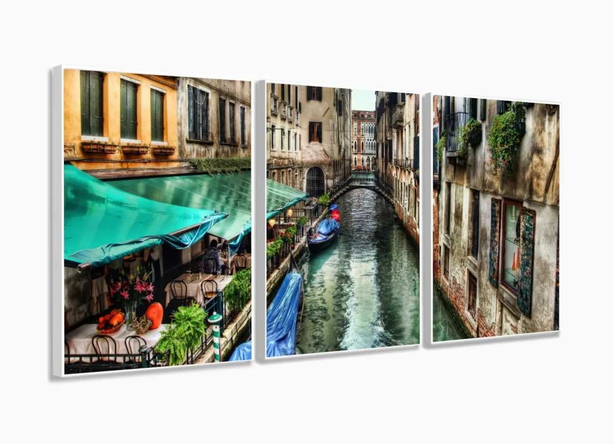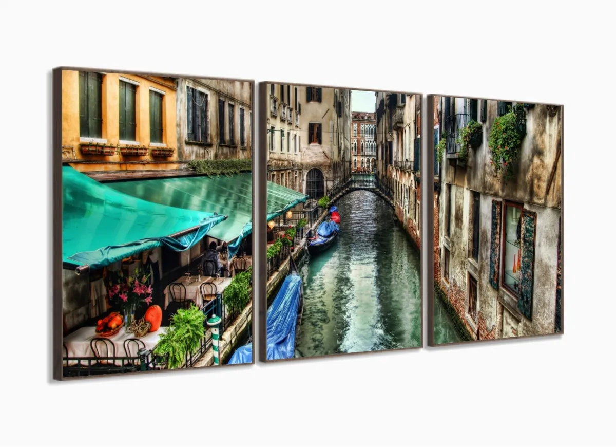 Quadro Decorativo Paisagem de Veneza Itália - Tela em Tecido com moldura filete