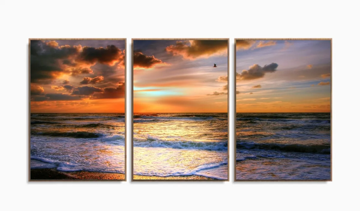 Quadros Decorativos Paisagem Mar Praia Recepção Sala 120x60 3 peças com moldura filete