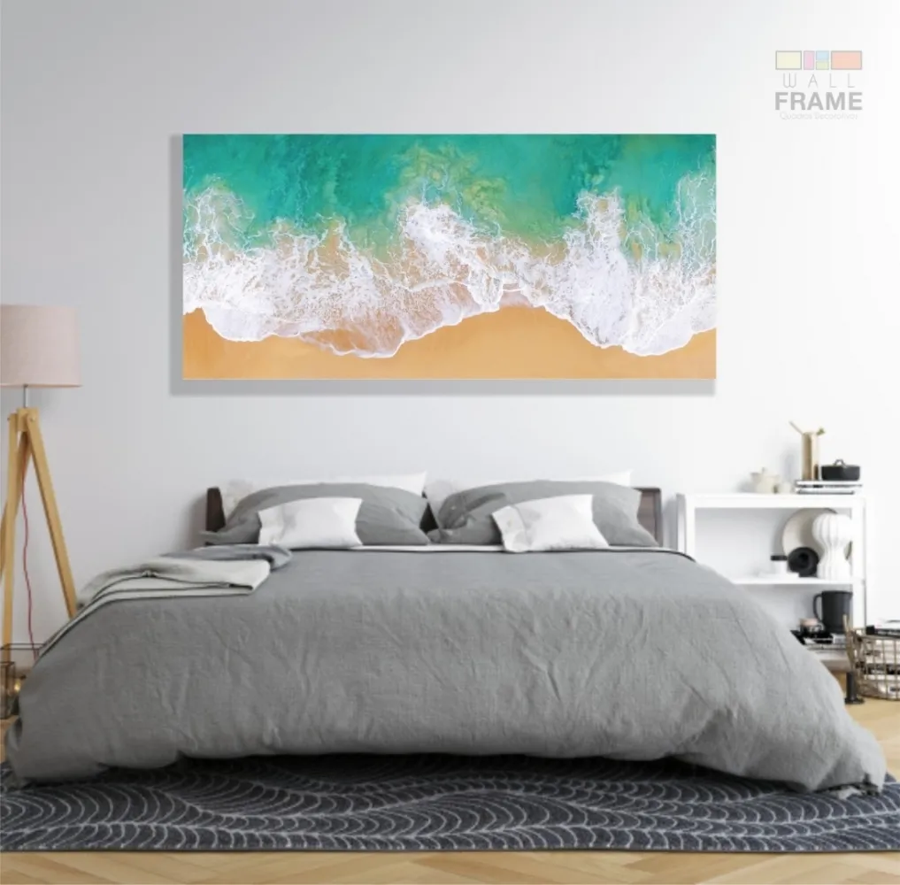 Quadro Decorativo Praia Mar Onda em Tecido Canvas 130x60