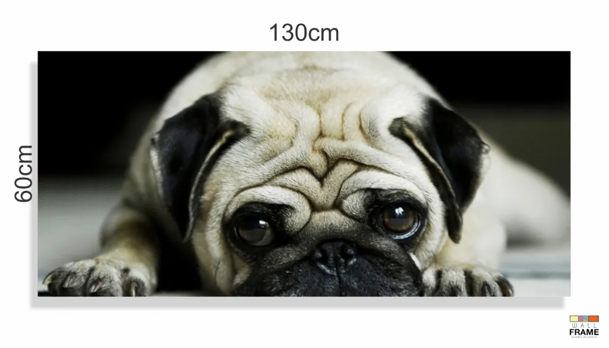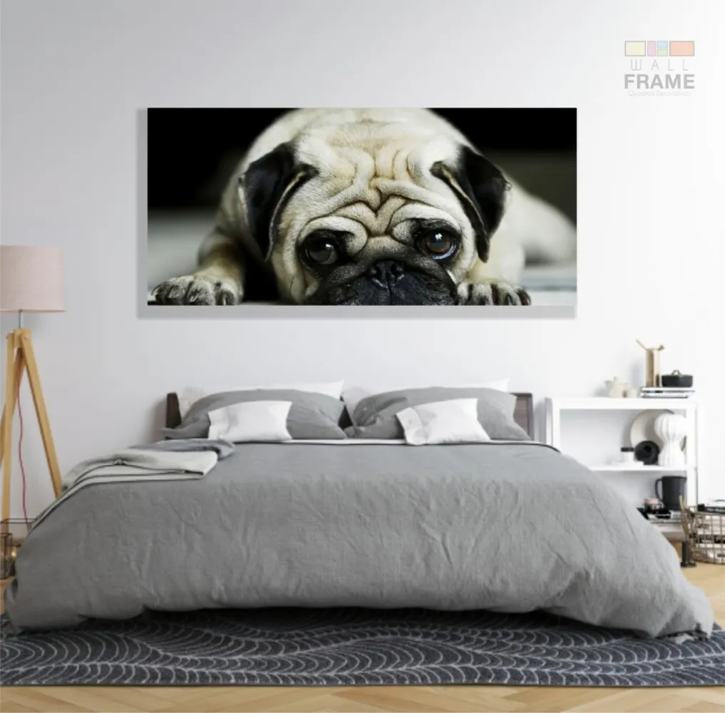 Quadro Decorativo Pug Cachorro Com Tela em Tecido Canvas 130x60