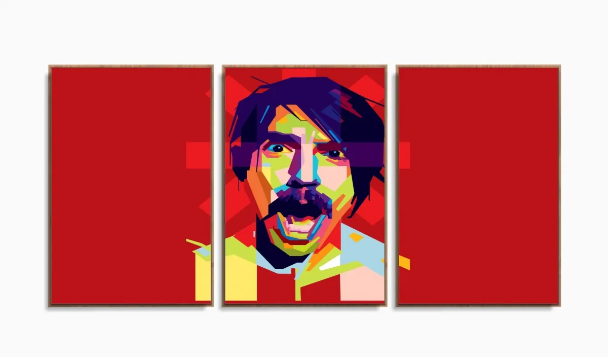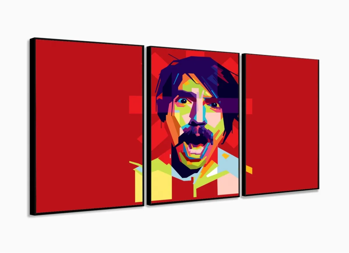 Quadro Decorativo Lionel Messi 3 peças 120x60 cm em tecido com moldura filete