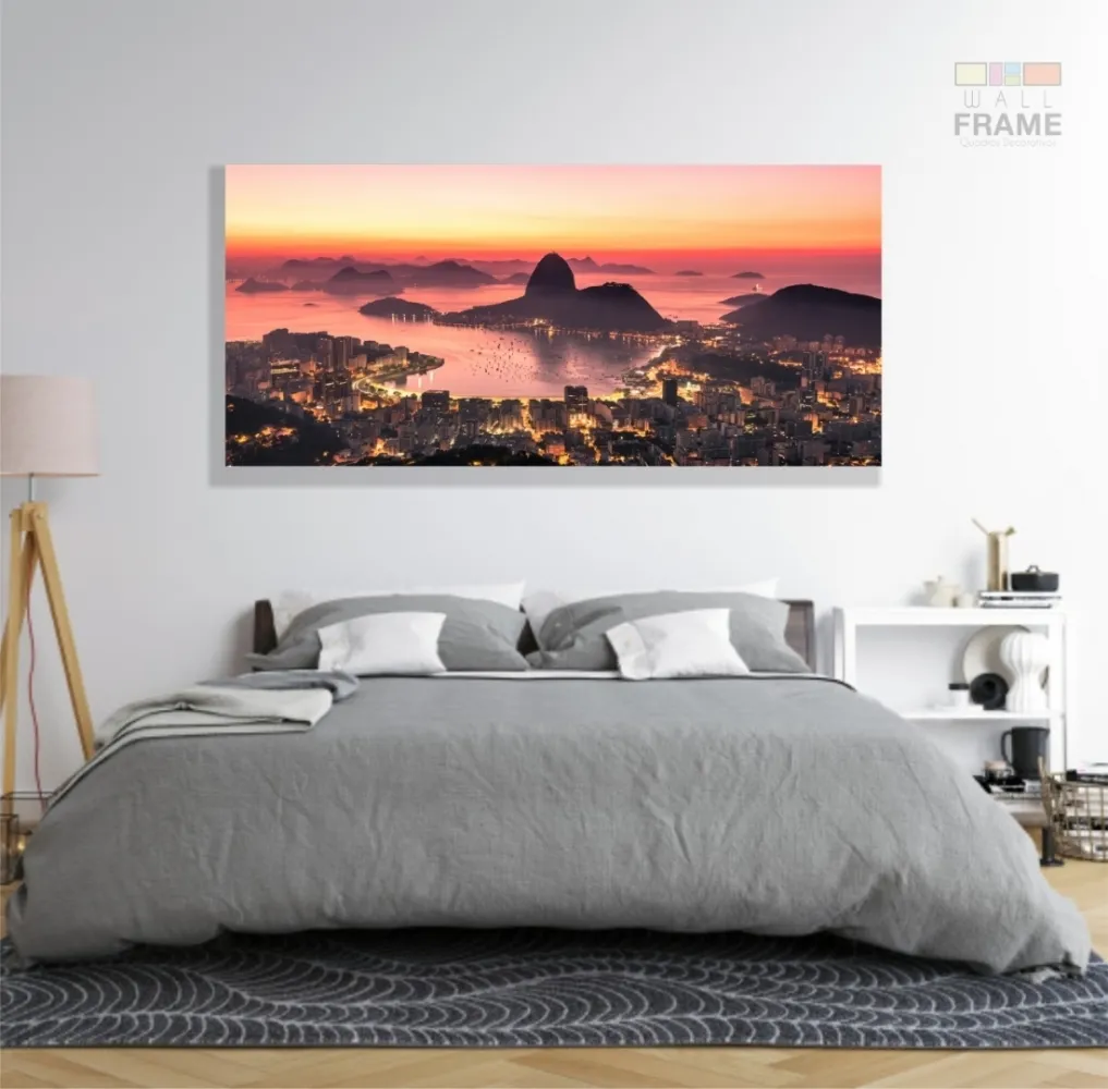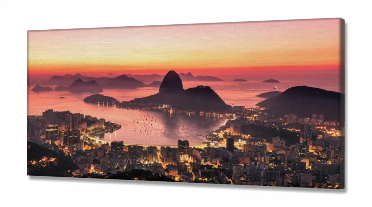 Quadro Decorativo Rio de Janeiro Entardecer em Tecido Canvas 130x60