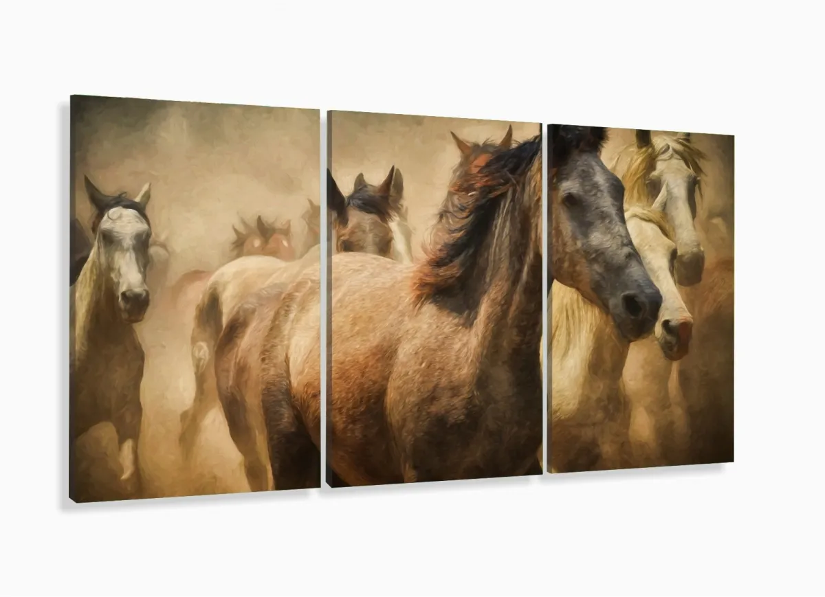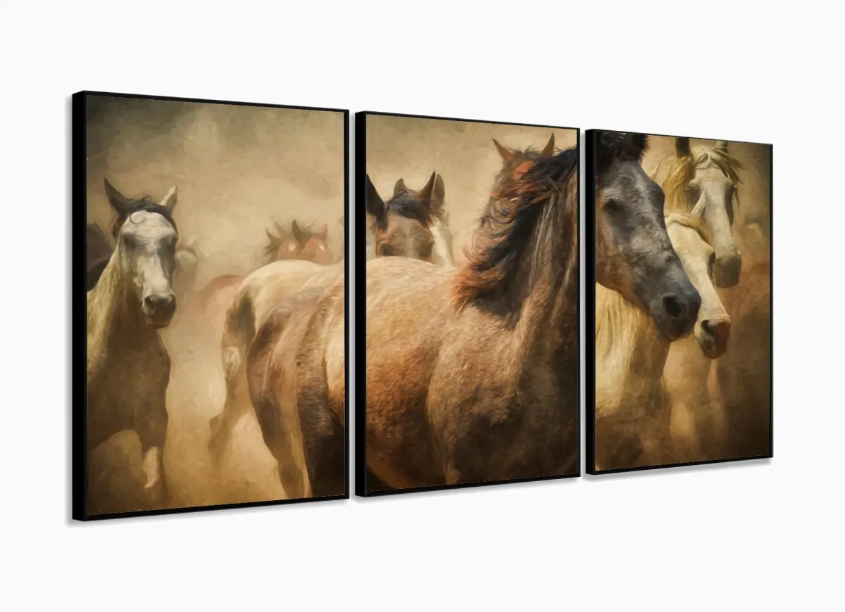 Quadro Decorativo Sala Quarto Cavalos 3 pç 120x60 com moldura filete