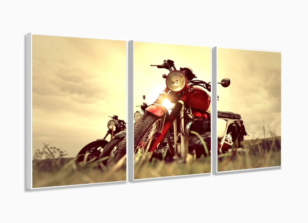 Quadro Decorativo Sala Quarto Escritório Motos 120x60 em tecido com moldura filete