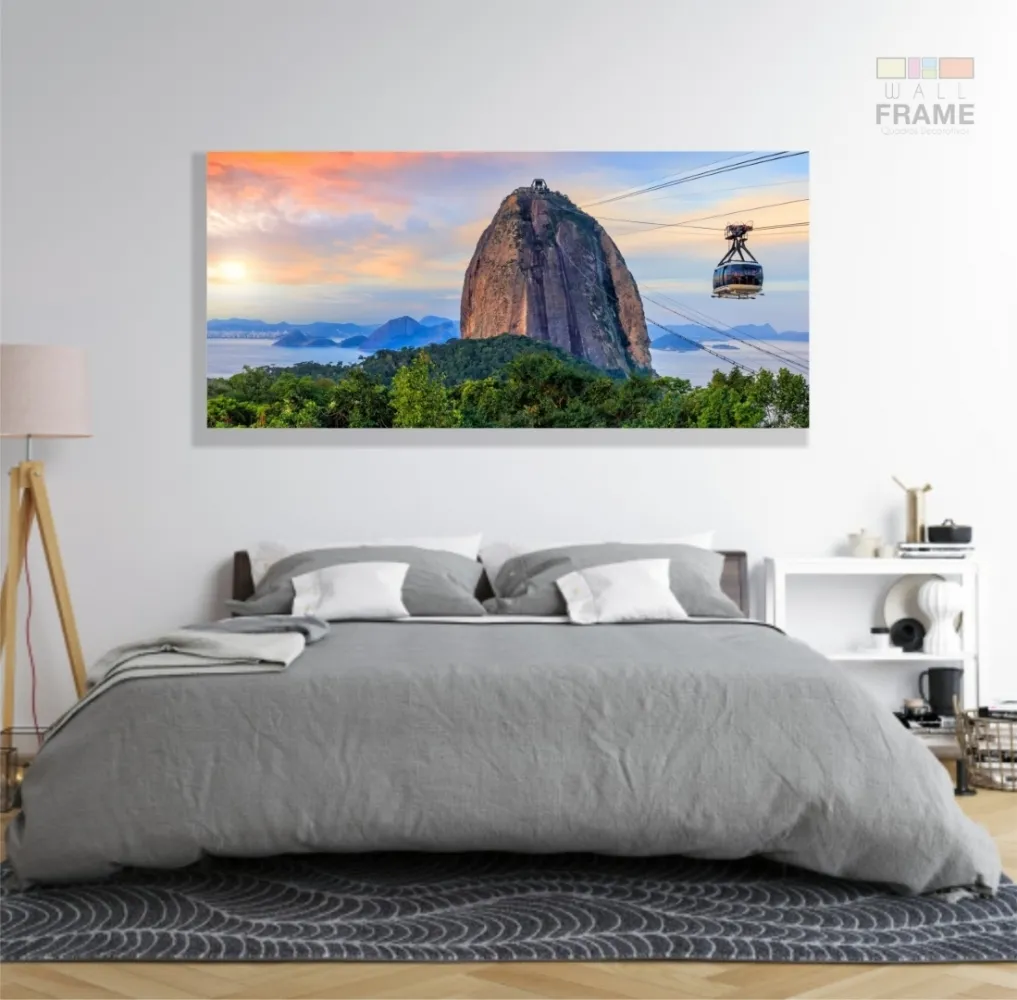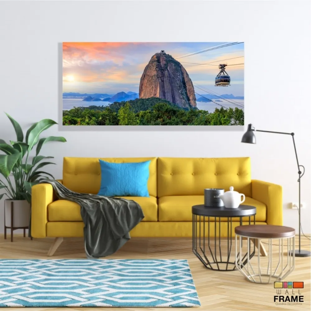 Quadro Decorativo Sala Quarto Escritório Teleférico Pão de açucar em Tecido Canvas 130x60