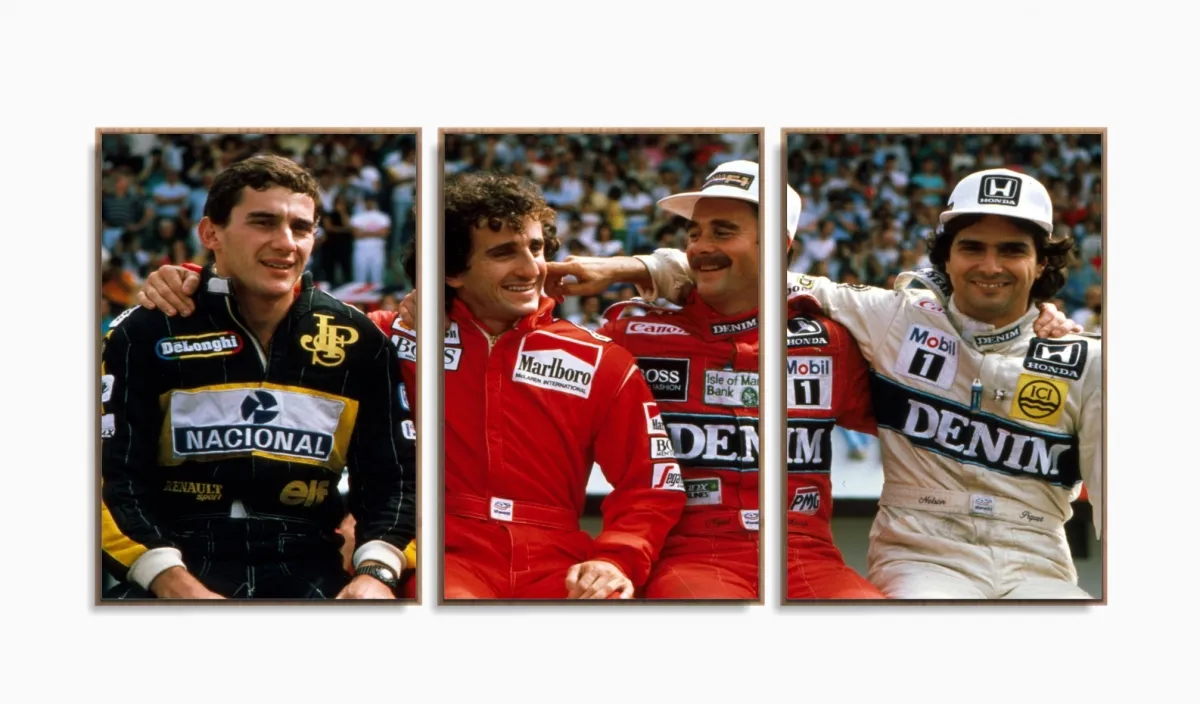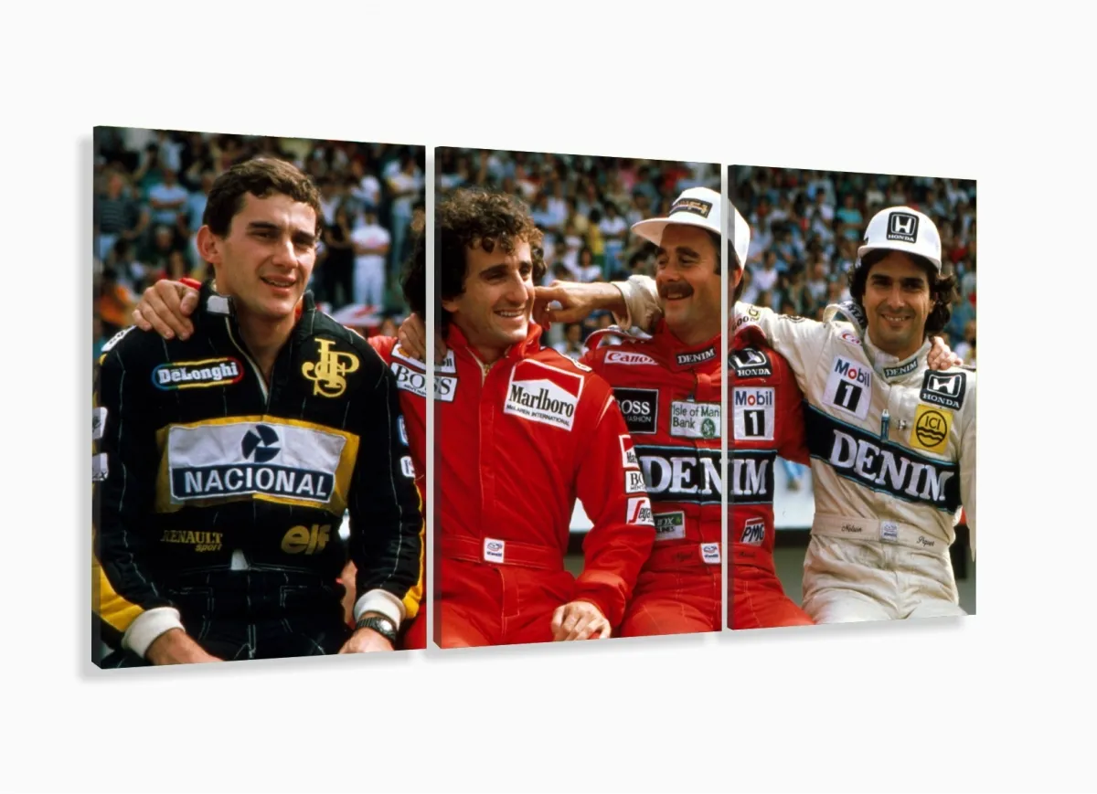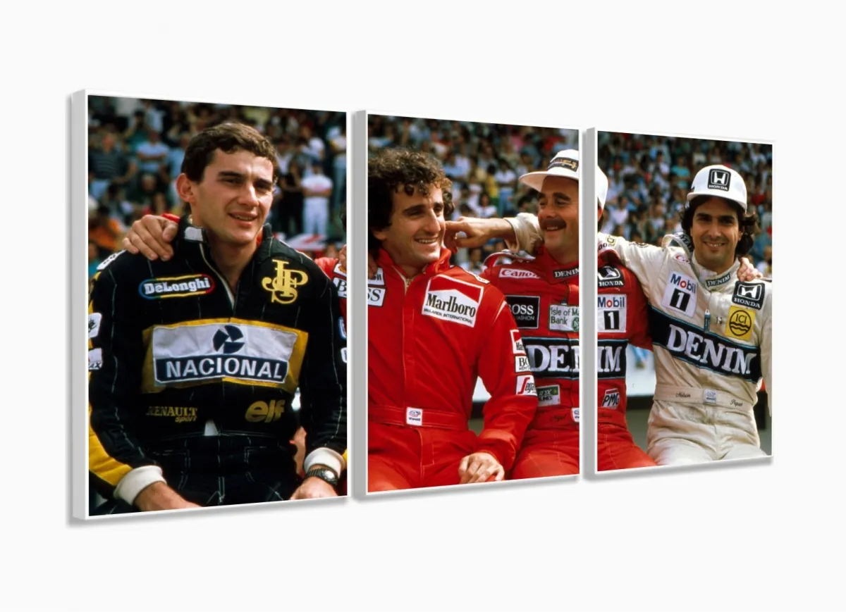 Quadro Decorativo Senna Pique Prost Mansel 120x60 3 peças com moldura filete