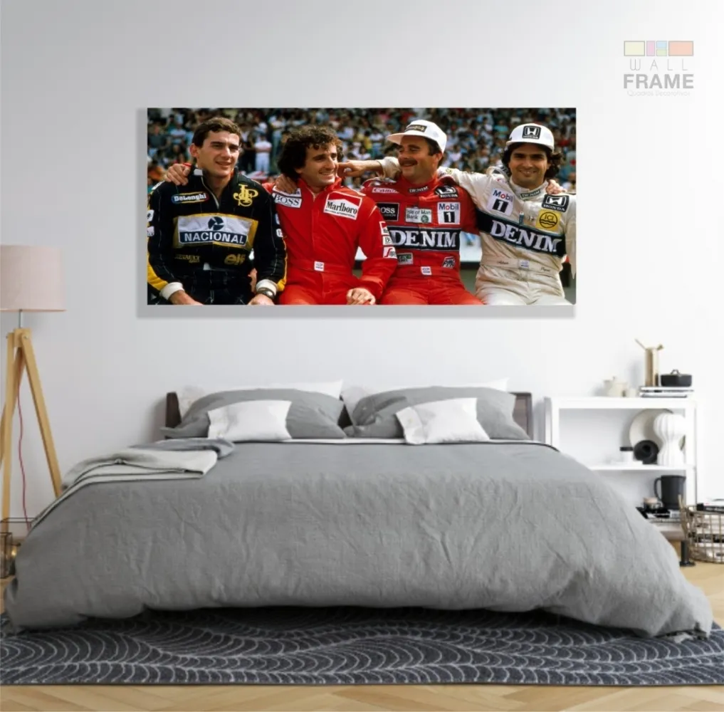 Quadro Decorativo Senna Pique Prost Mansel em Tecido Canvas 130x60