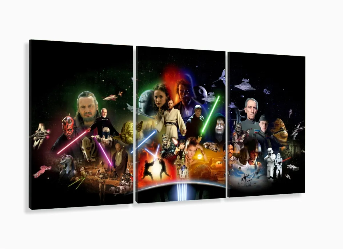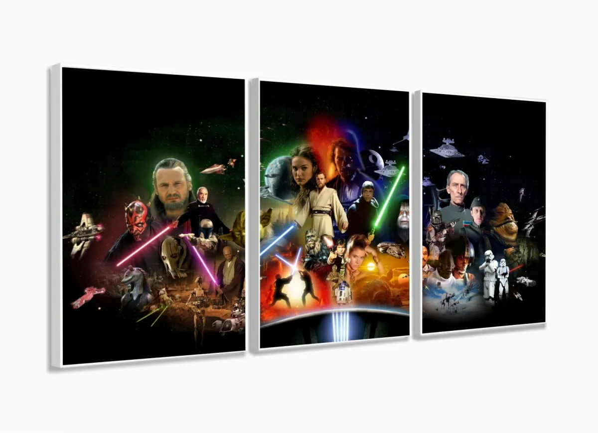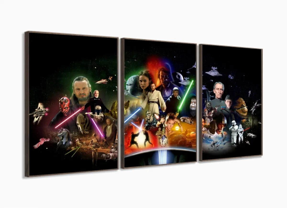 Quadro Decorativo Star Wars E 3 peças 120x60 cm em tecido com moldura filete