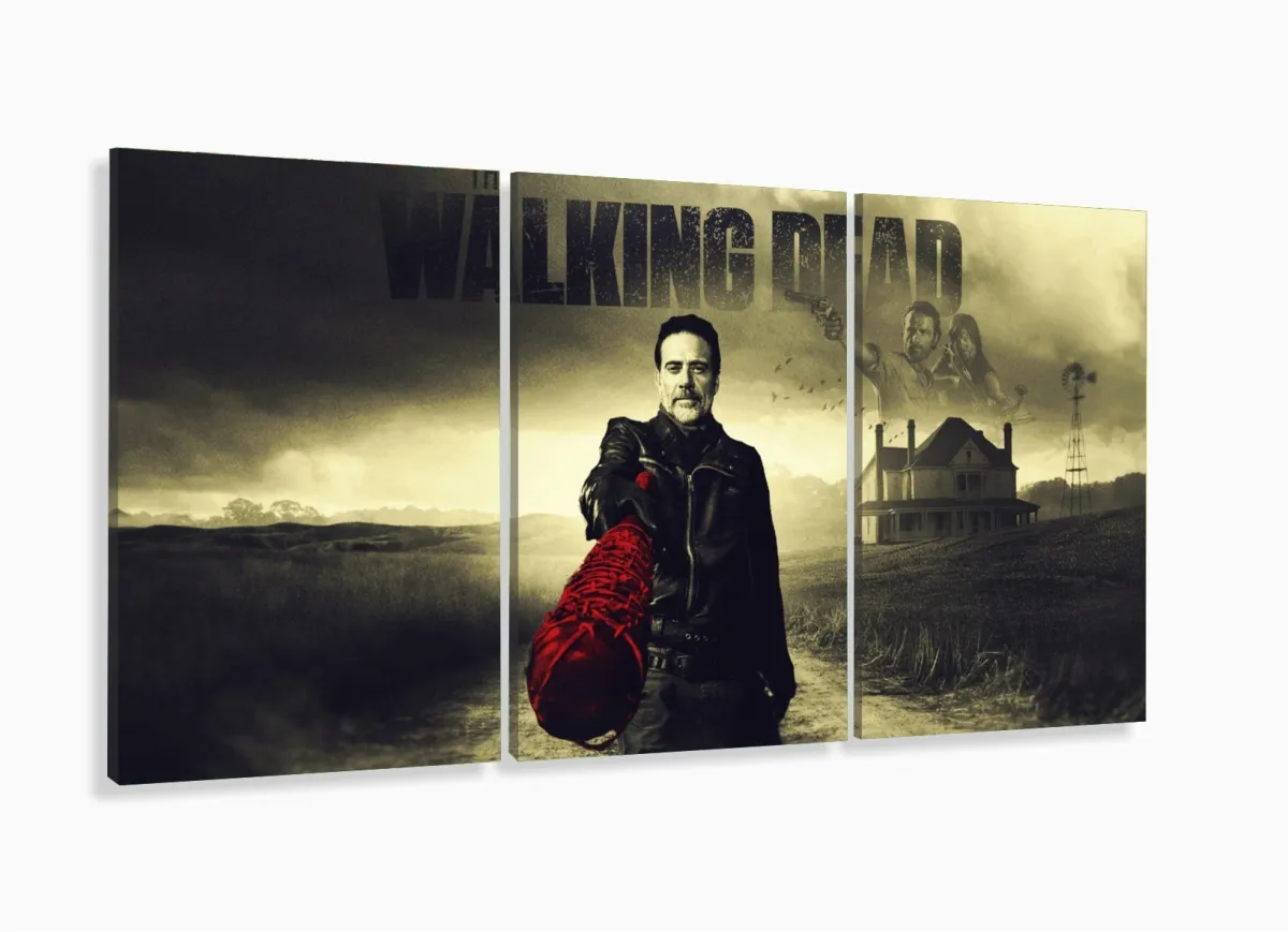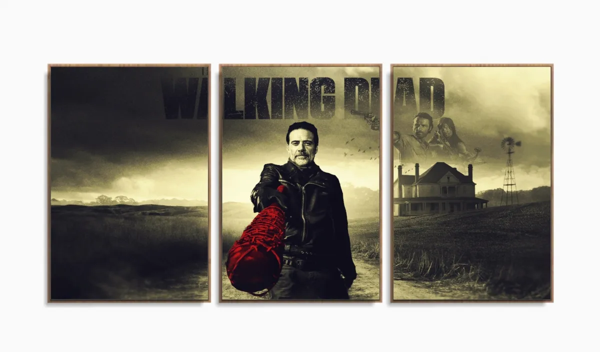 Quadro Decorativo The Walking Dead 120x60 3 peças em tecido m02 com moldura filete