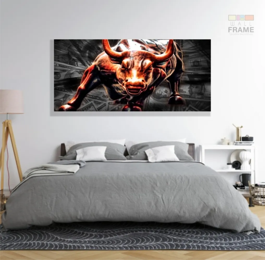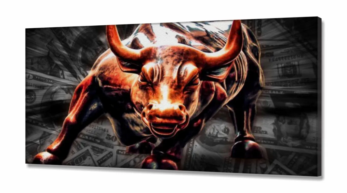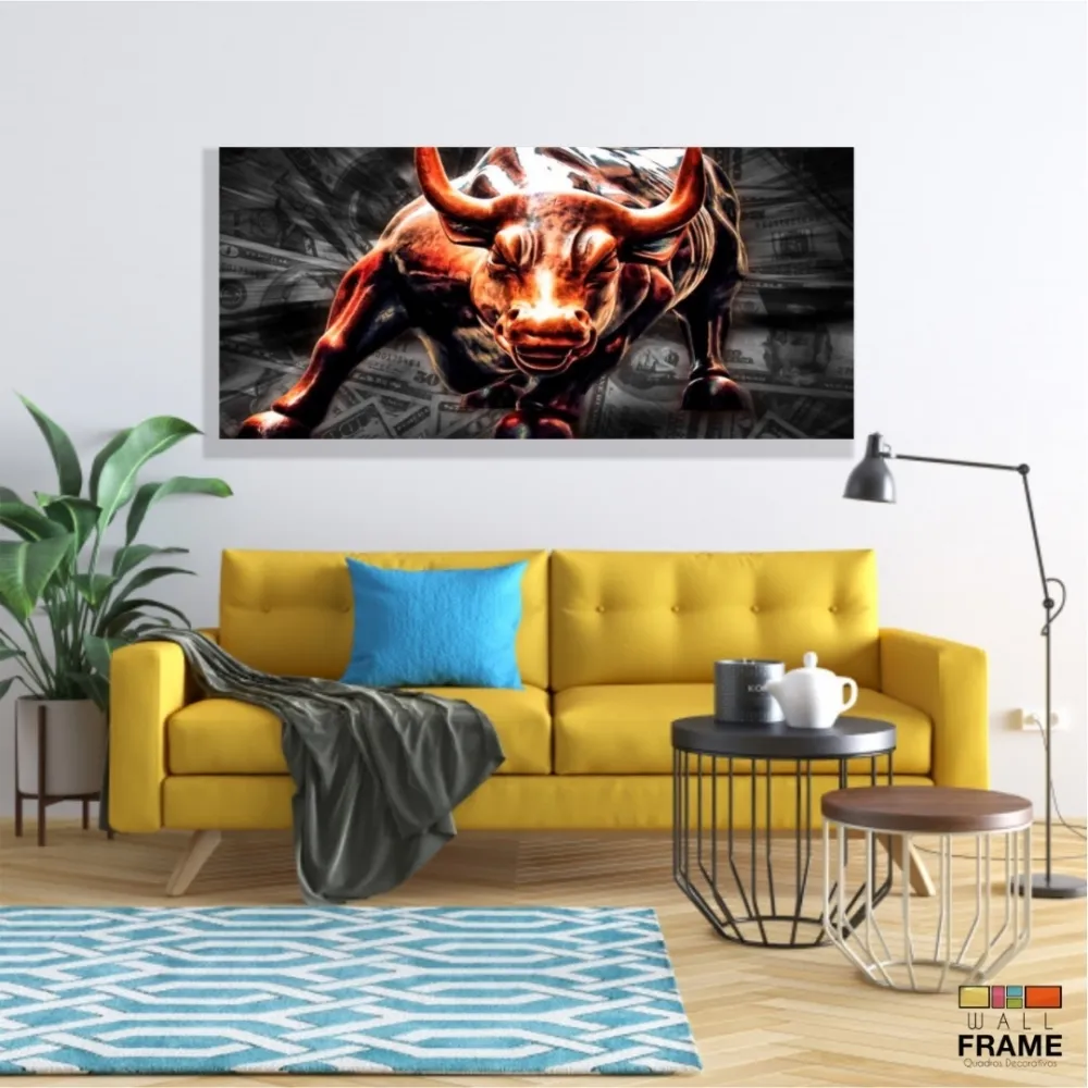 Quadro Decorativo Touro De Wall Street Dolar em Tecido Canvas 130x60