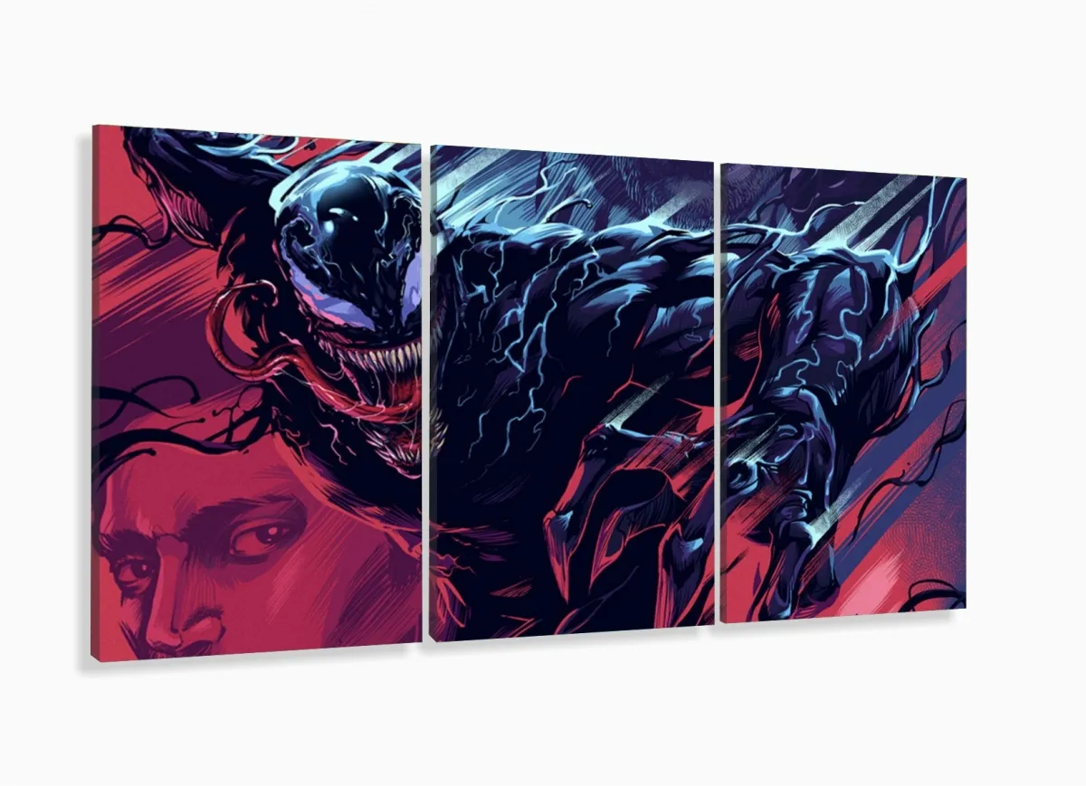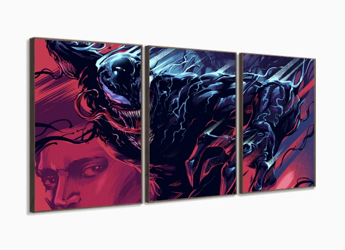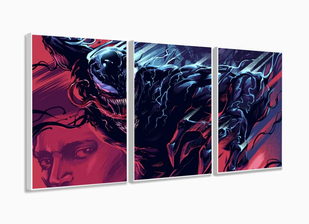 Quadro Decorativo Venom 120x60 3 peças cm em tecido com moldura filete