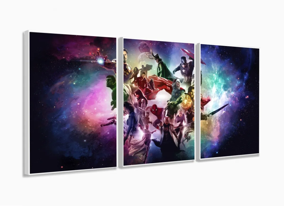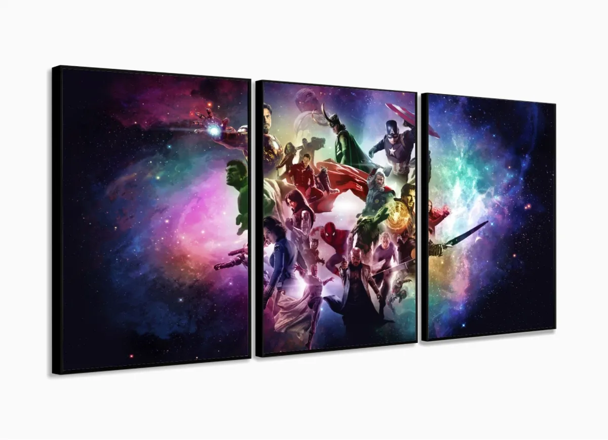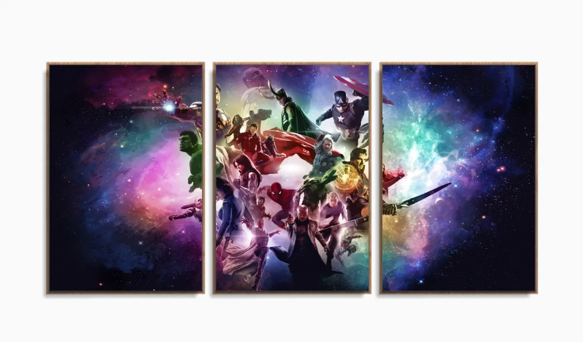 Quadro Decorativo Vingadores D 5 peças 120x60 3 peças com moldura filete