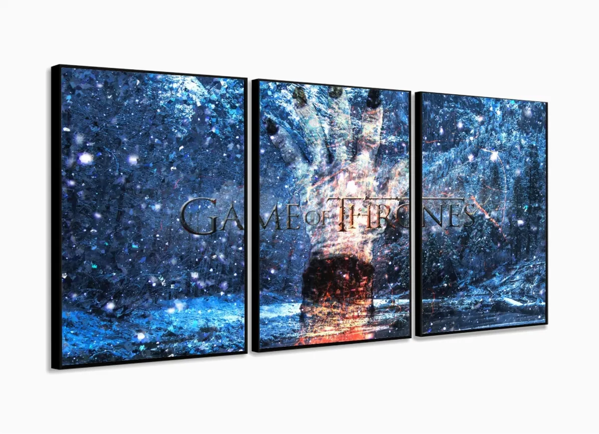 Quadro Decorativos Game of Thrones com 3 peças 125x60 m01 com moldura filete