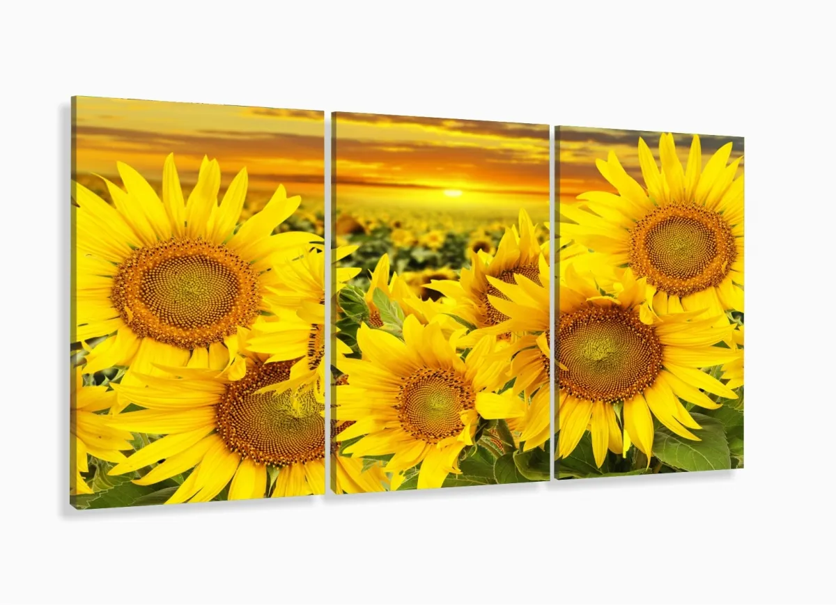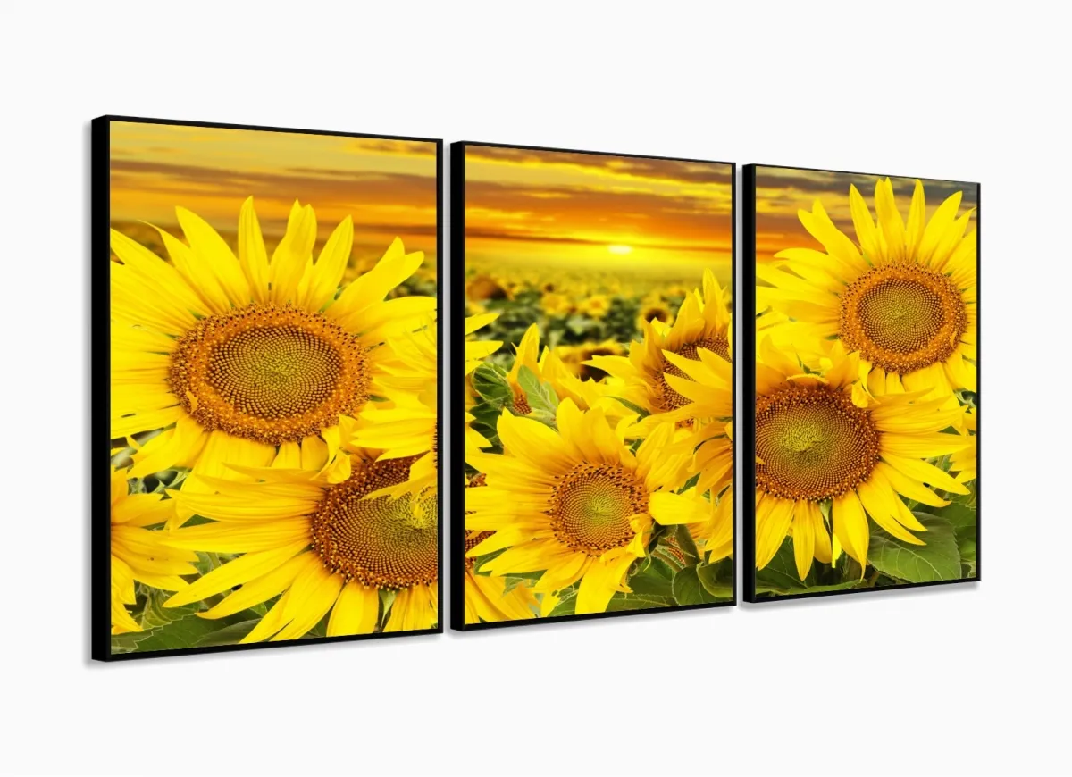 Quadro Decorativo Campo de Girasol 3 pçs 120x60 com moldura filete