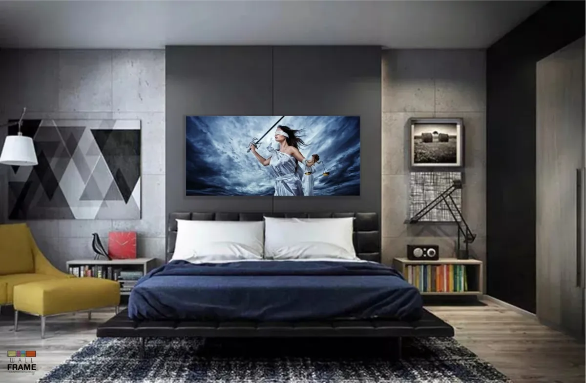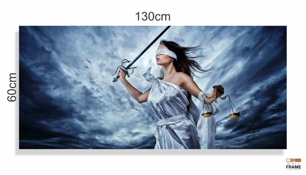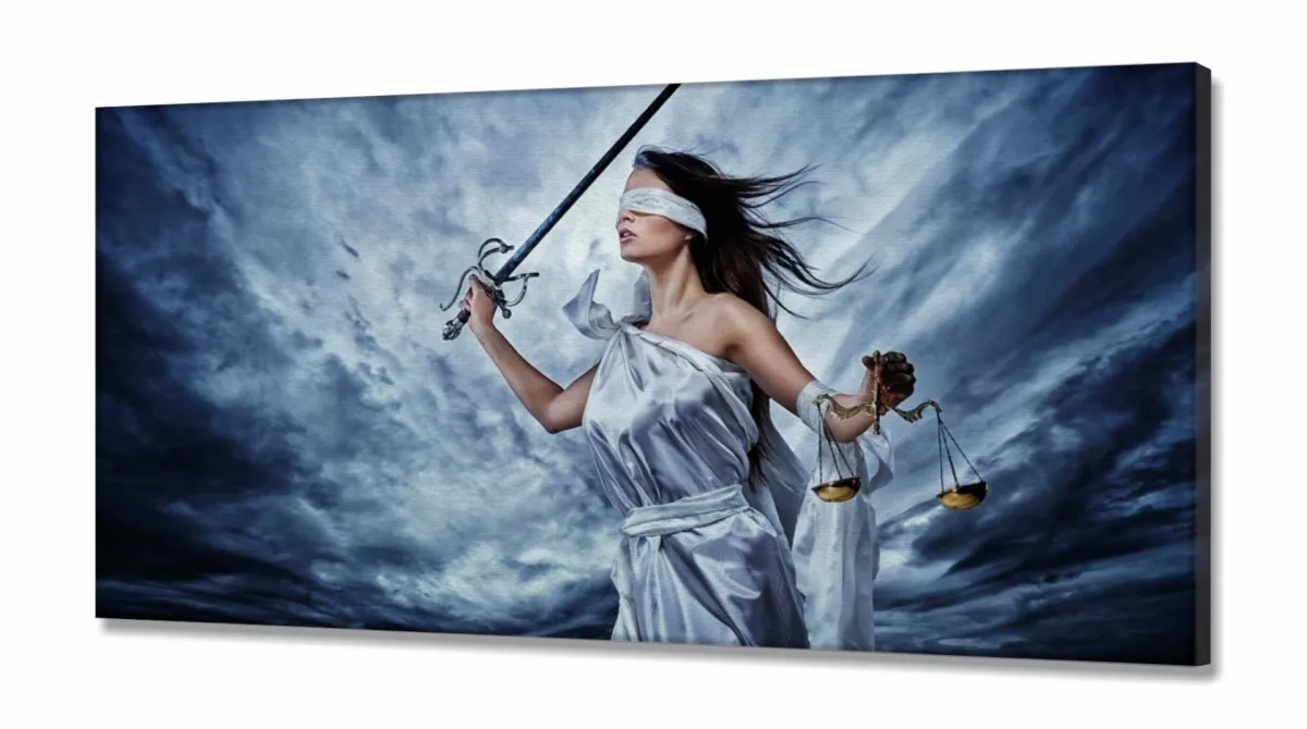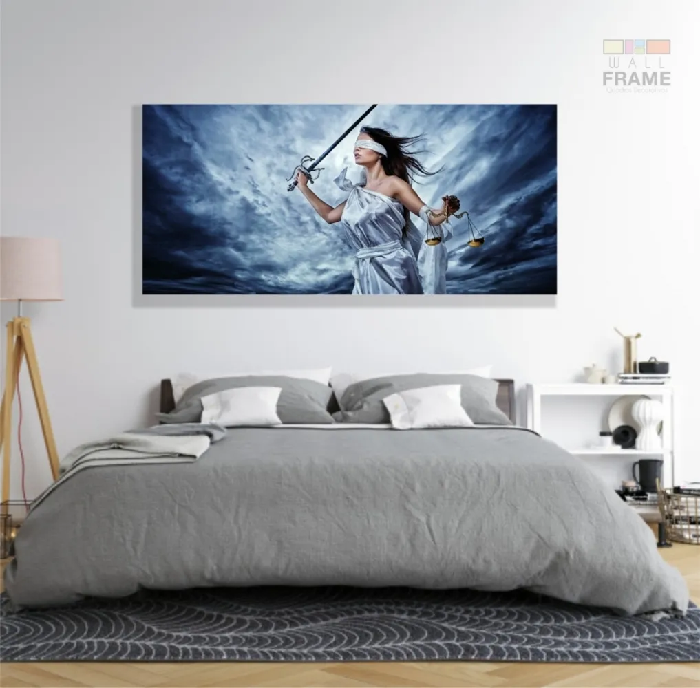 Quadro Escritório Advocacia Deusa Justiça Azul em Tecido Canvas 130x60