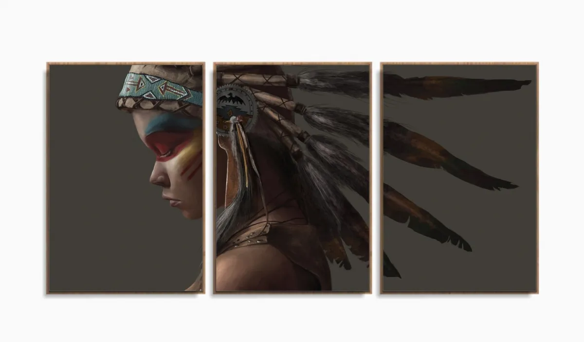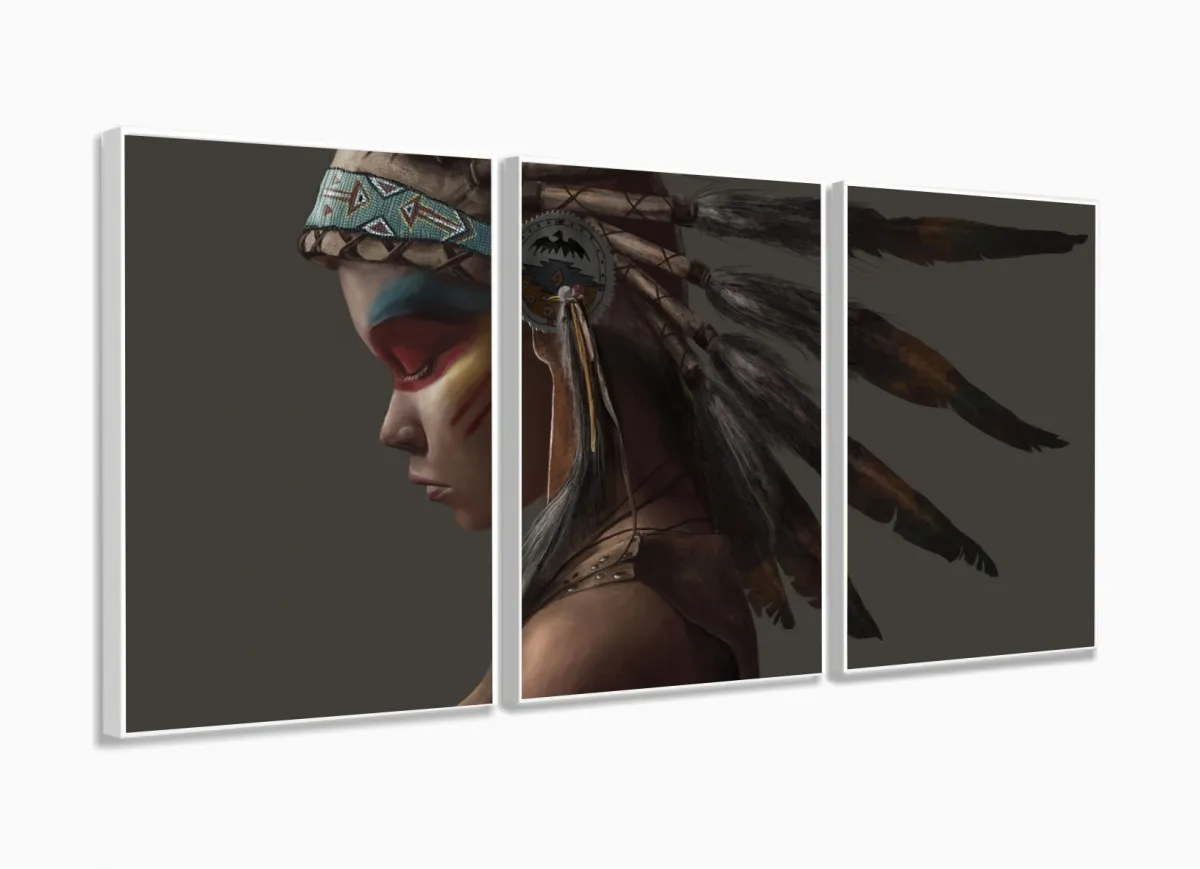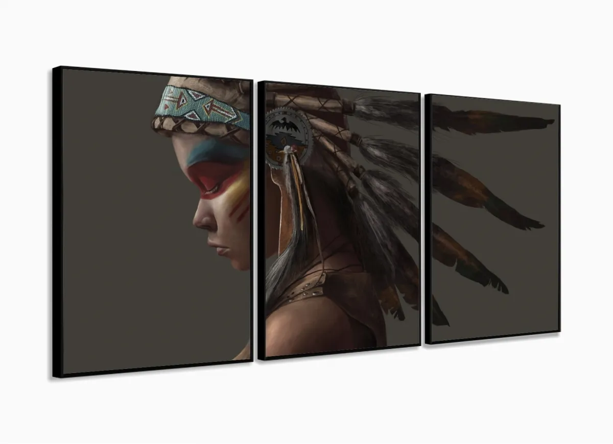Quadro Índio Americano Artístico Sala Em Tecido 120x60 com moldura filete