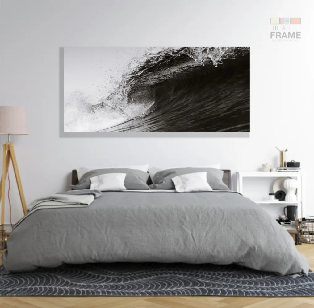 Quadro Mosaico Onda Do Mar Arte Em Preto E Branco Surf em Tecido Canvas 130x60