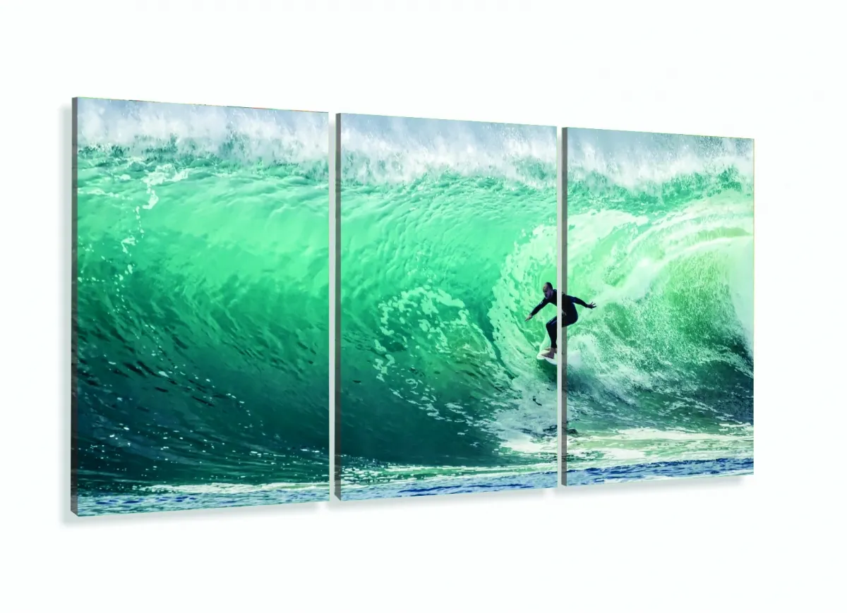 Quadro Mosaico Onda Mar Surf 5 Peças decorativo 120x60 3 peças com moldura filete