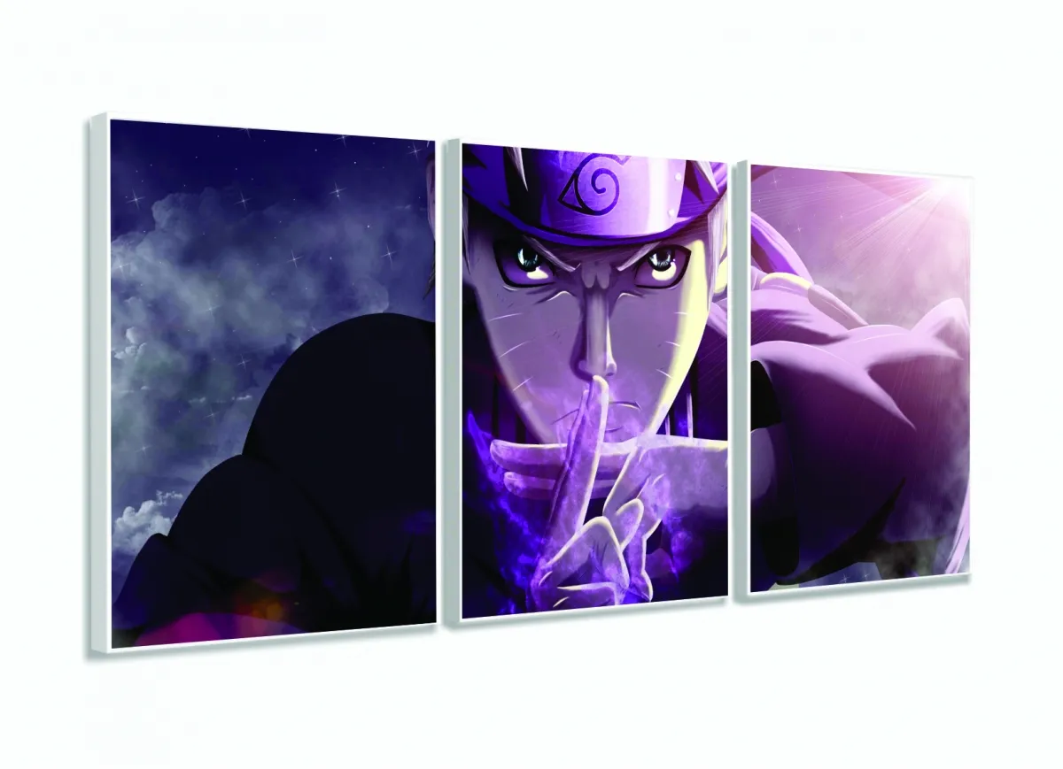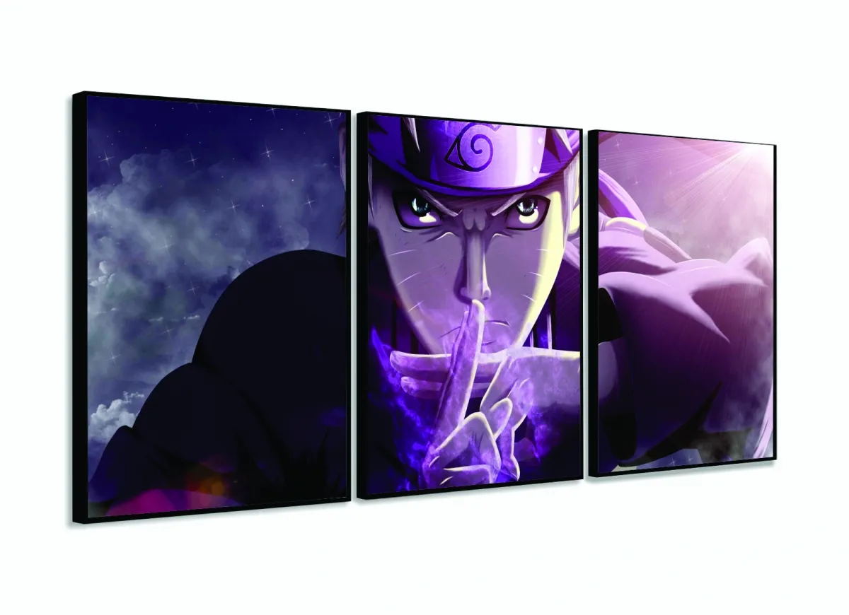 Quadros Decorativos Naruto 120x60 3 peças em Tecido com moldura filete