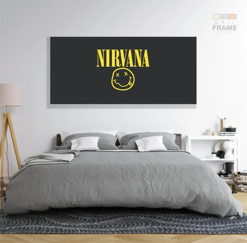 Quadro Nirvana Música Banda Decorativo em Tecido Canvas 130x60