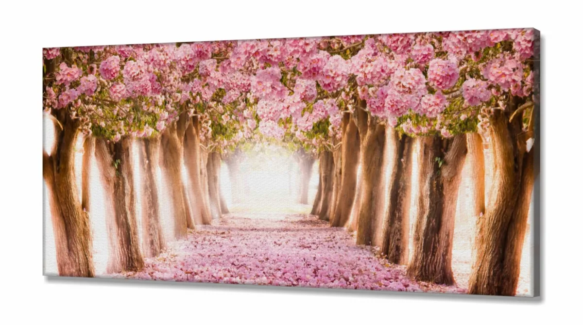 Quadro Paisagem Flores Rosa Mosaico Em Tecido em Tecido Canvas 130x60