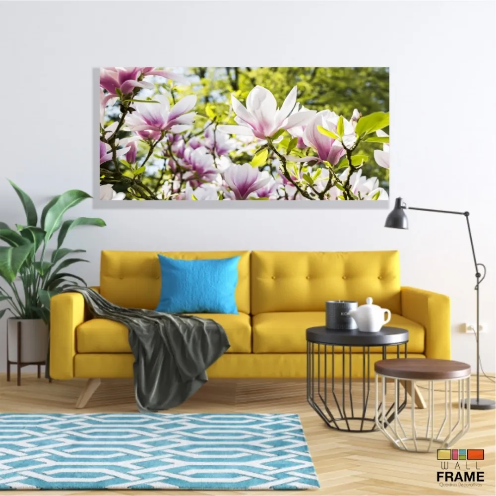 Quadro Planta Flor Magnólia Natureza Artístico em Tecido Canvas 130x60
