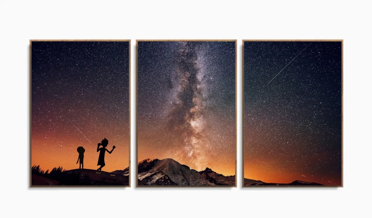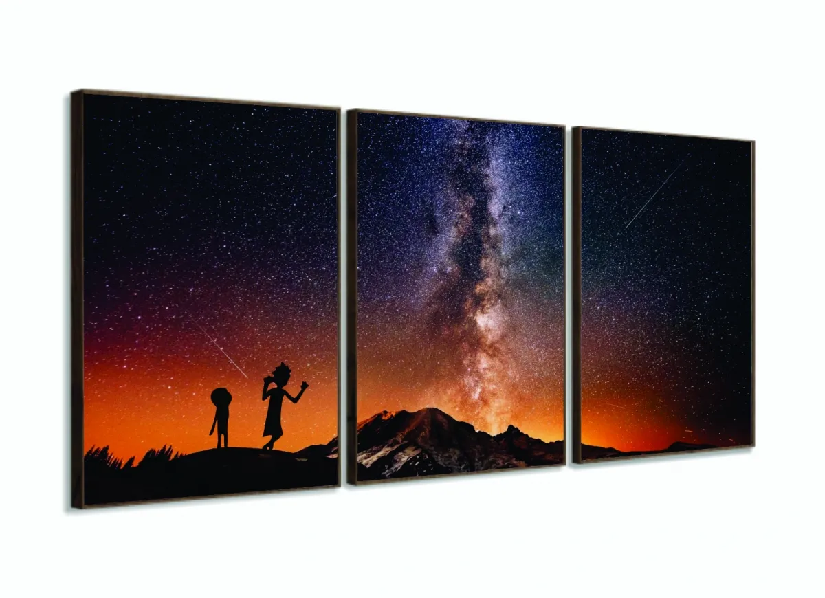 Quadro Ricky and Morty Universos Mosaico 3 Peças decorativo com moldura filete