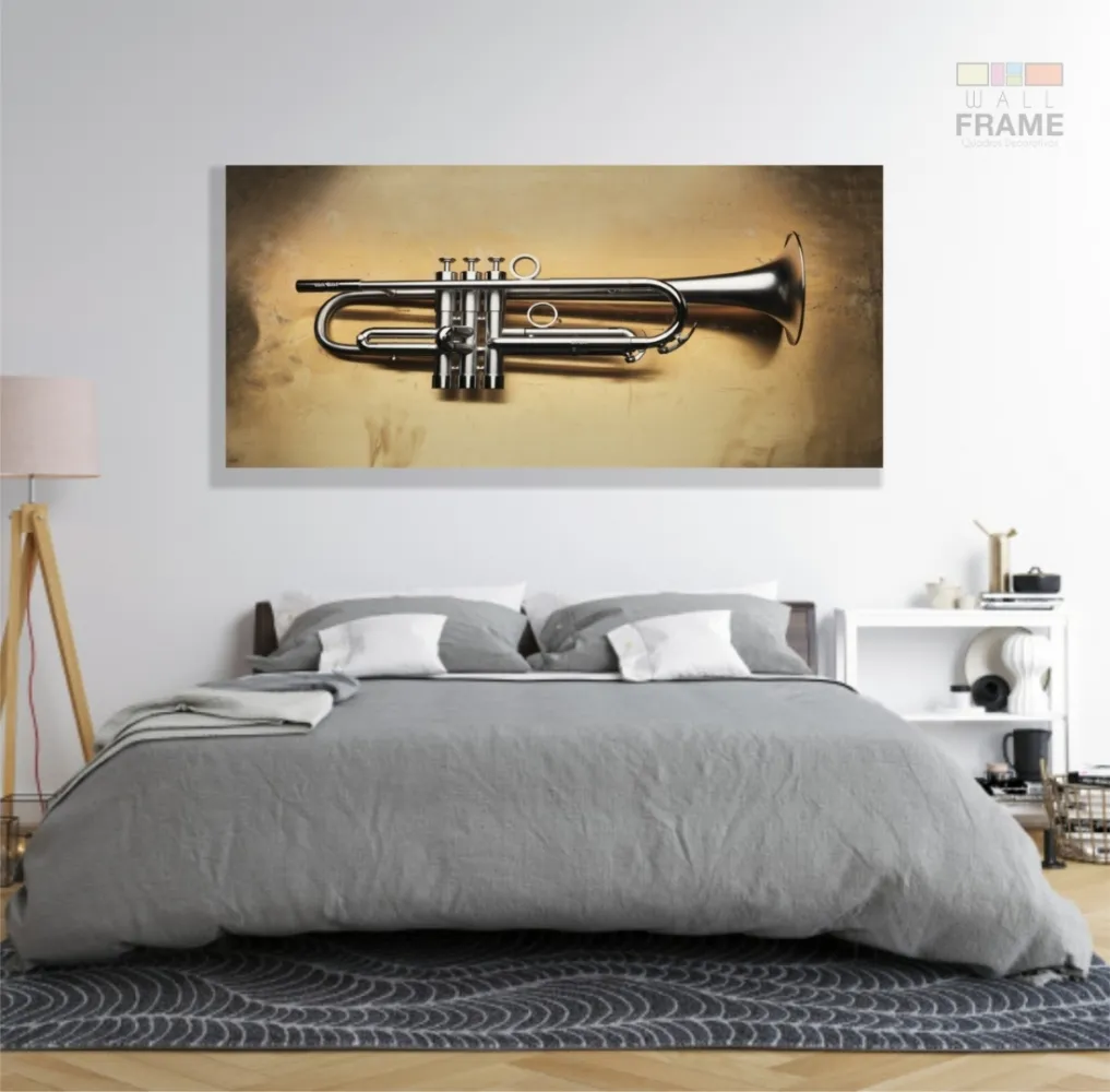 Quadro Trompete Vintage Decorativo em Tecido Canvas 130x60