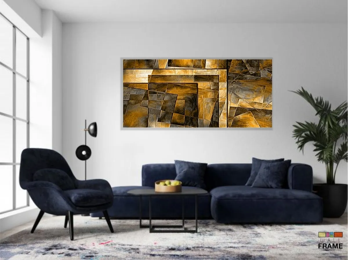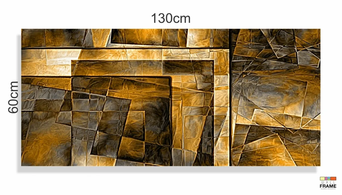 Quadro Decorativo Abstrato Dourado Luxo Mosaico 130x60 em Tecido Canvas