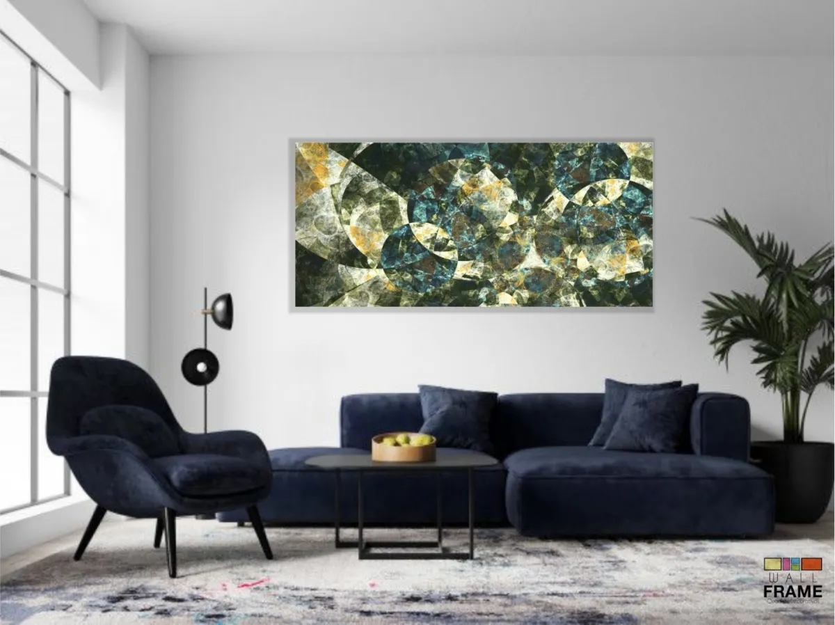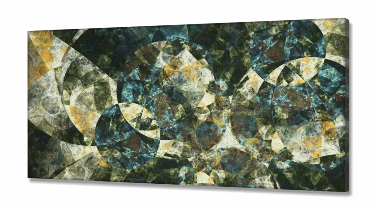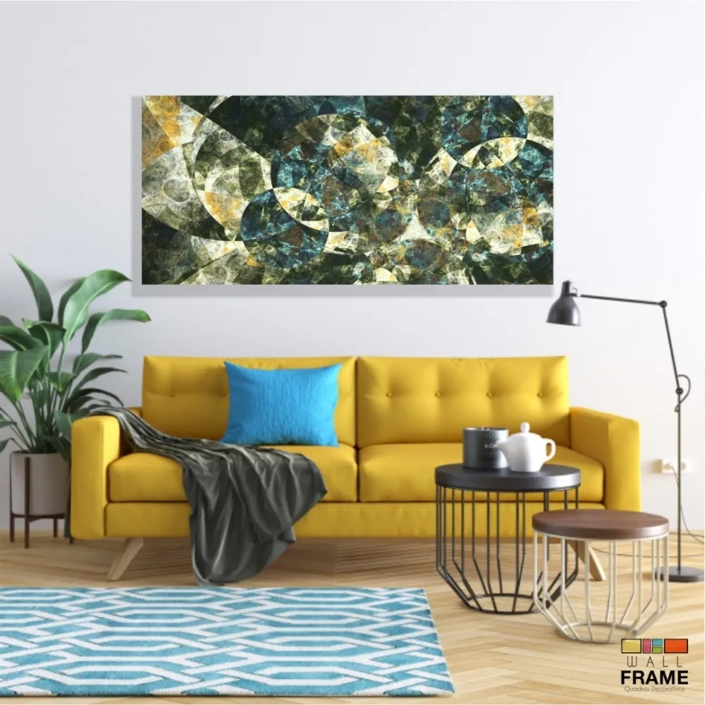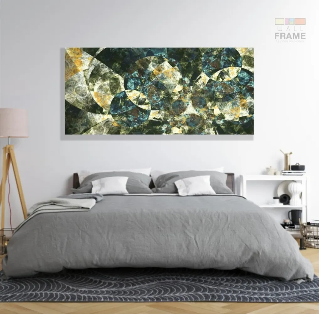 Quadro Decorativo Abstrato Geometrico Tons verde 130x60 em Tecido Canvas