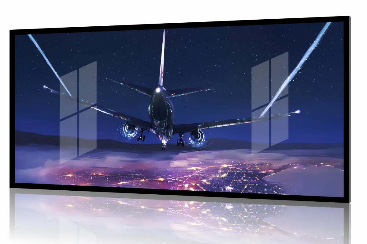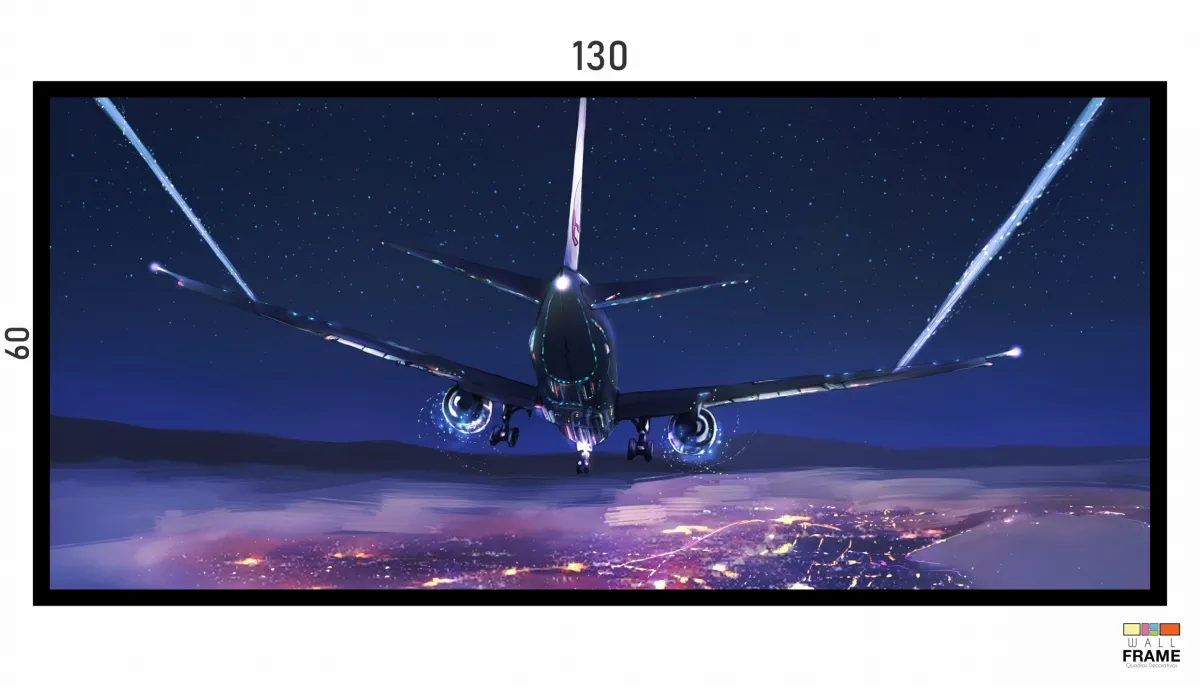 Quadro Decorativo Avião Comercial 130x60 Moldura preta 2x2 cm