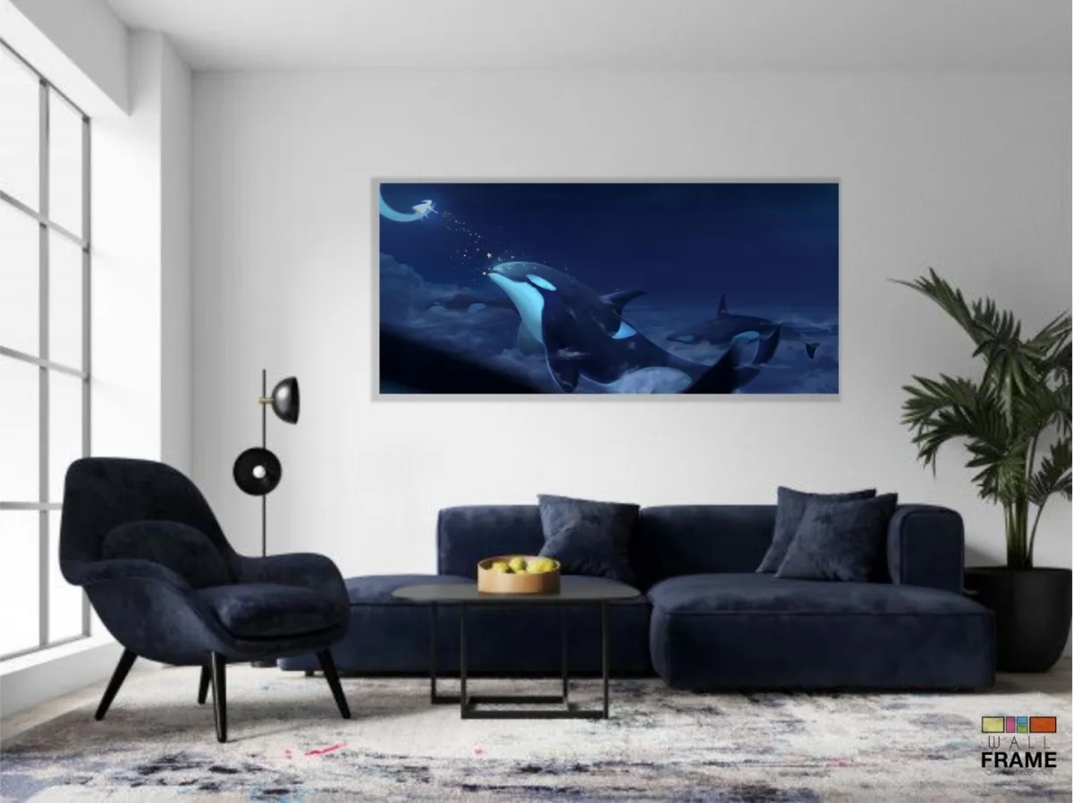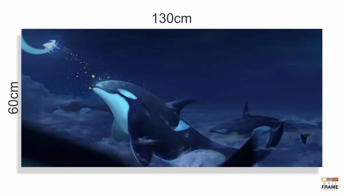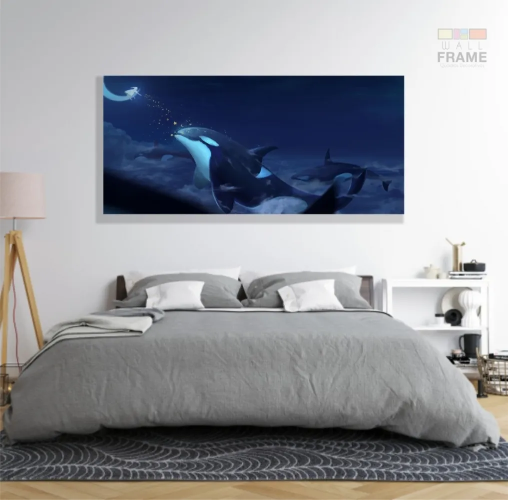 Quadro Decorativo Baleia em Tecido Canvas 130x60