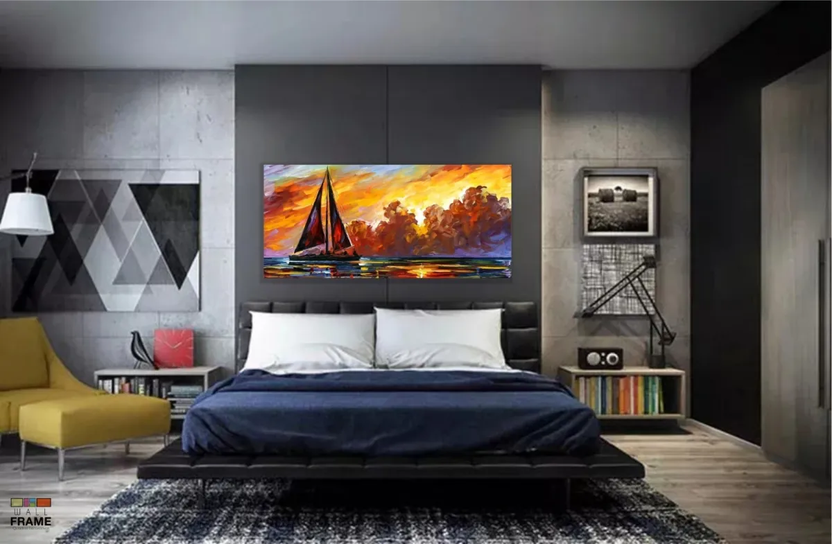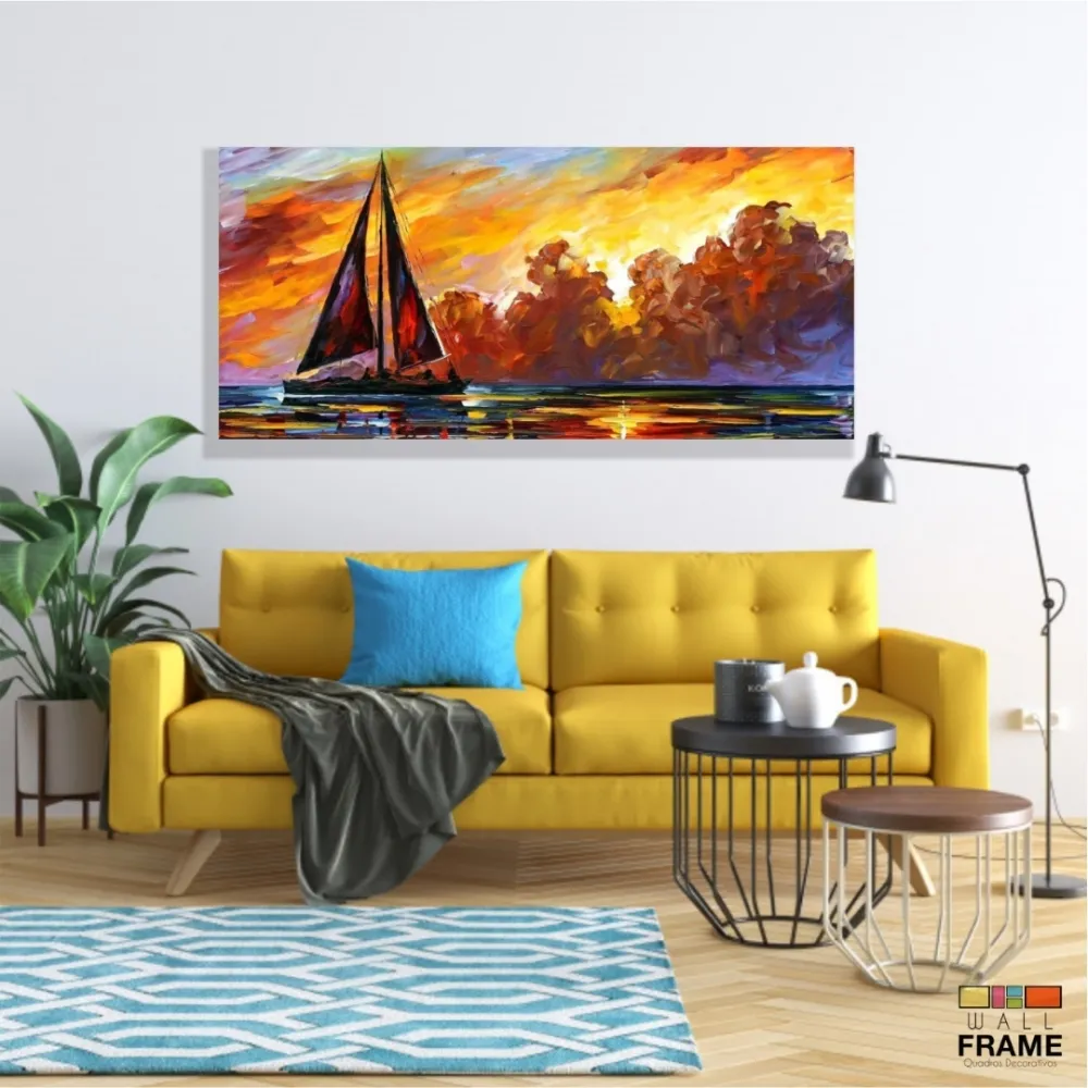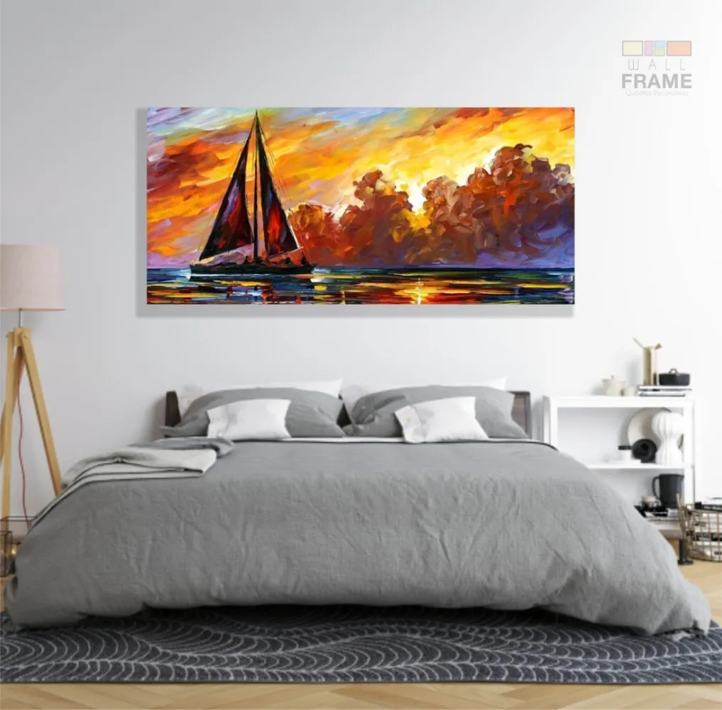 Quadro Decorativo Barco a Vela em Tecido Canvas 130x60 cm