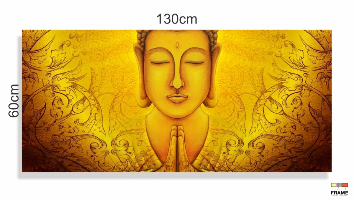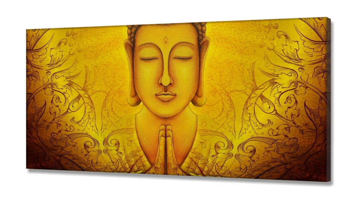 Quadro Decorativo Buda Meditação Amarelo Arte 130x60 em Tecido Canvas