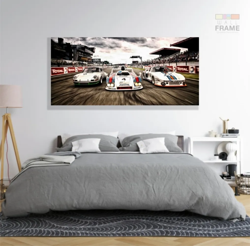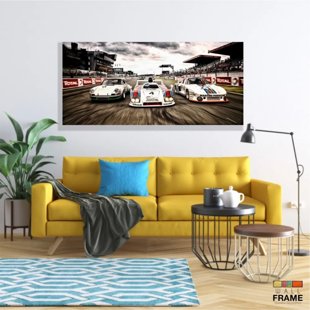 Quadro Decorativo Carros De Corrida Em Tecido Canvas 130x60