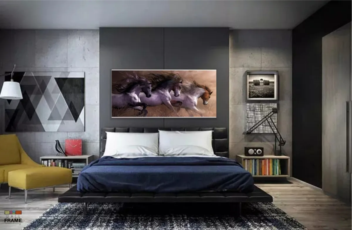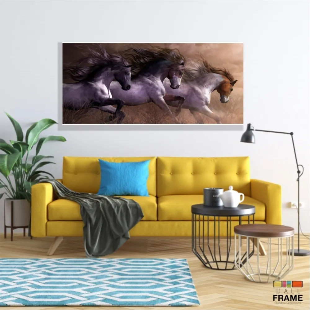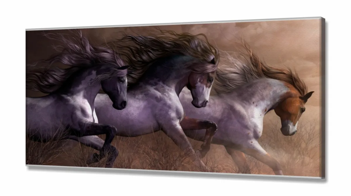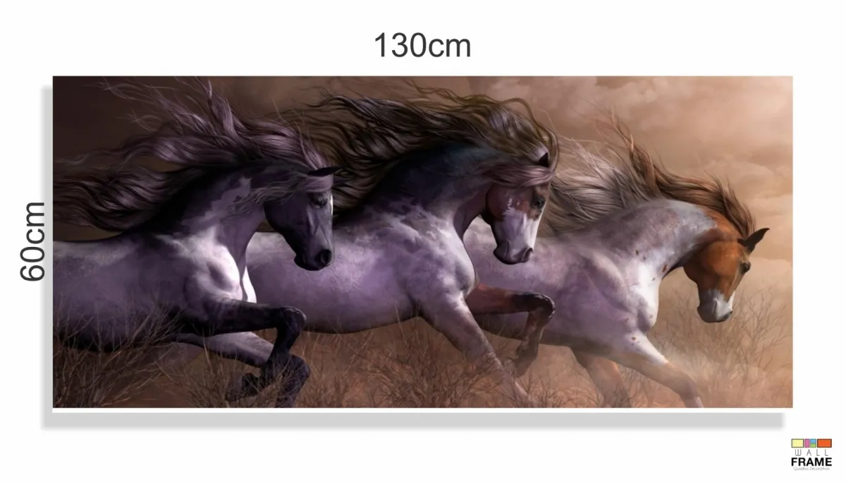 Quadro Decorativo Cavalos em Tecido Canvas 130x60