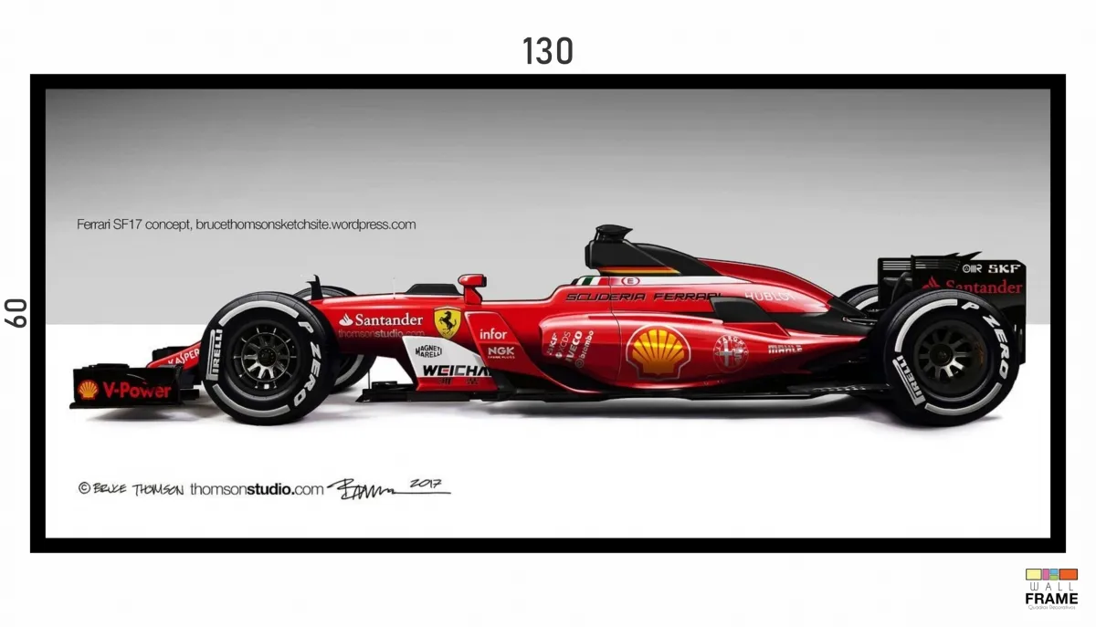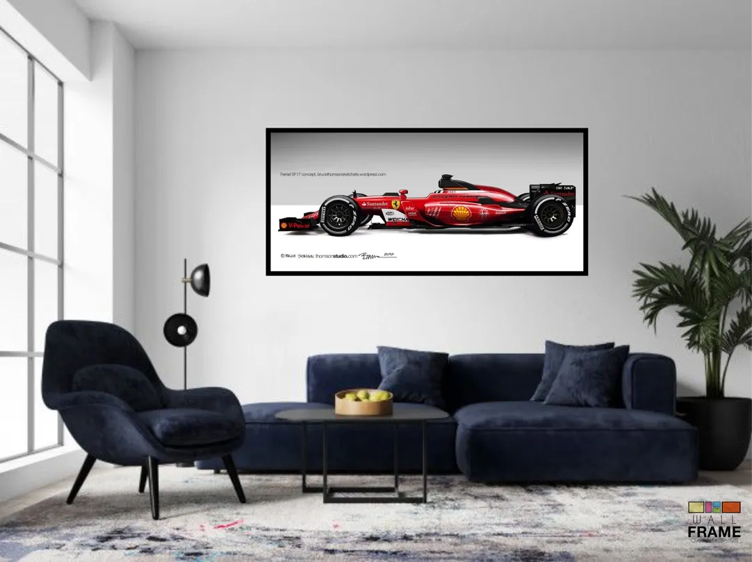 Quadro Decorativo F1 Escuderia Ferrari 130x60 Moldura preta 2x2 cm