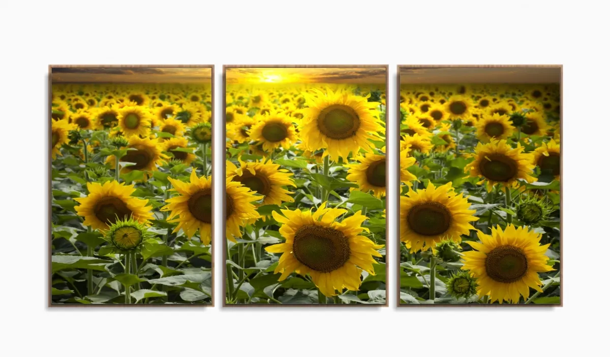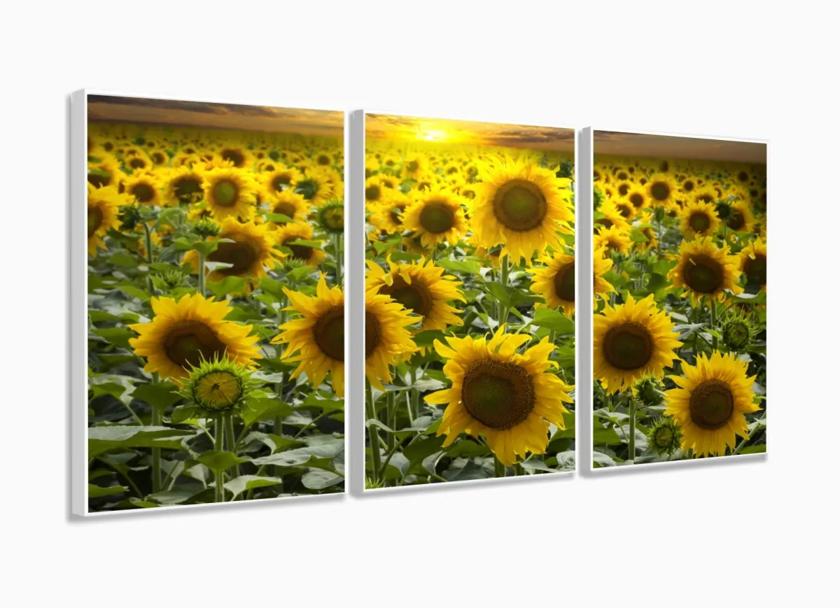 Quadro Decorativo Girassóis Grandes 120x60 Sala Quarto com moldura filete
