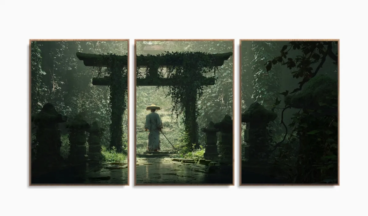 Quadro Decorativo Japão Paisagem Sala Quarto 120x60 com moldura filete
