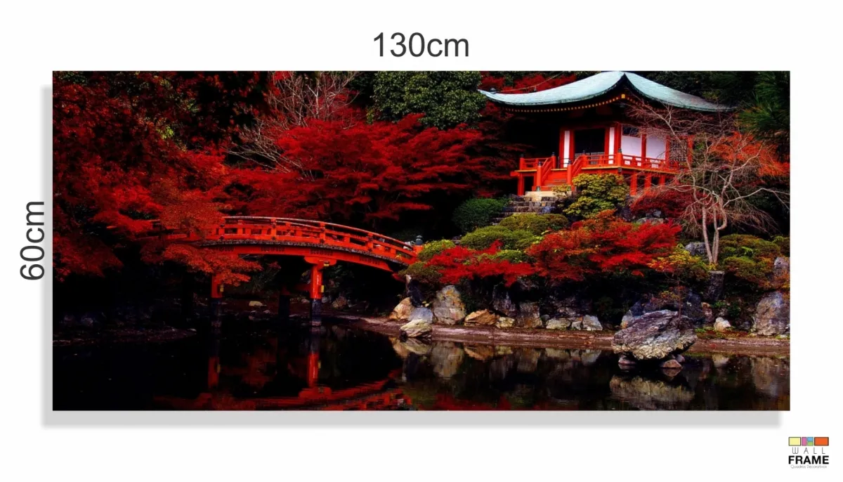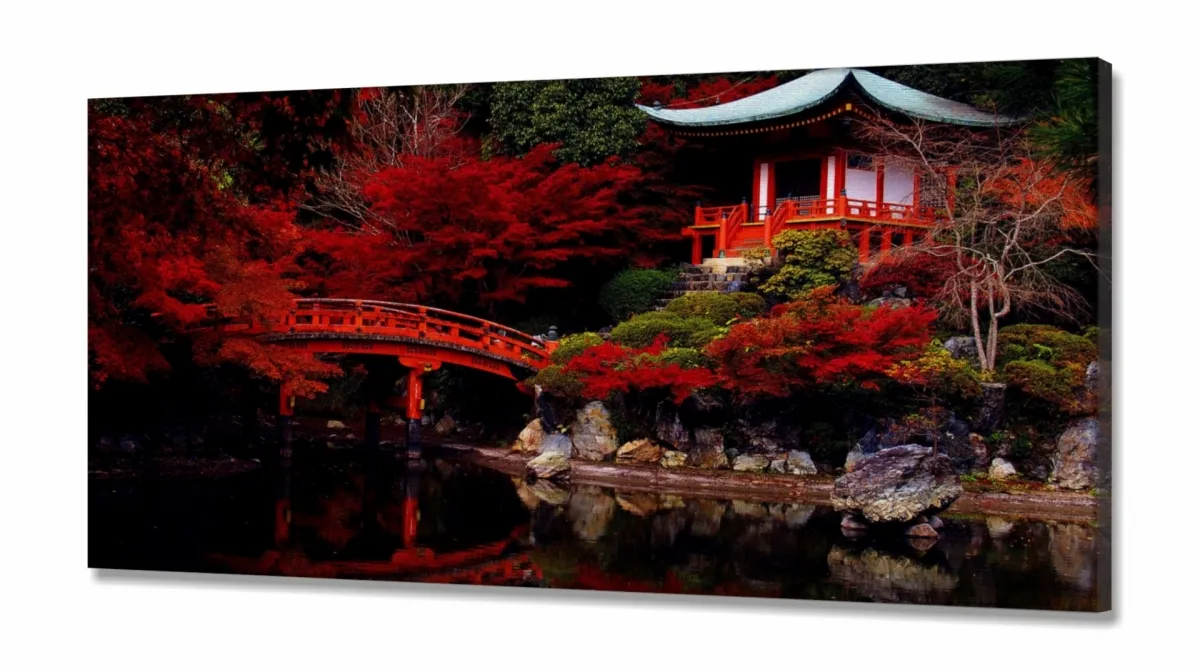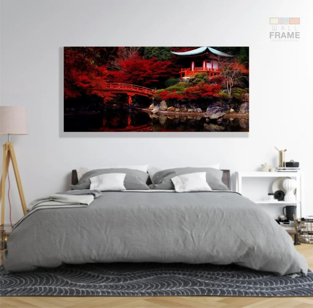 Quadro Decorativo Japão Sakura Vermelho em Tecido Canvas 130x60