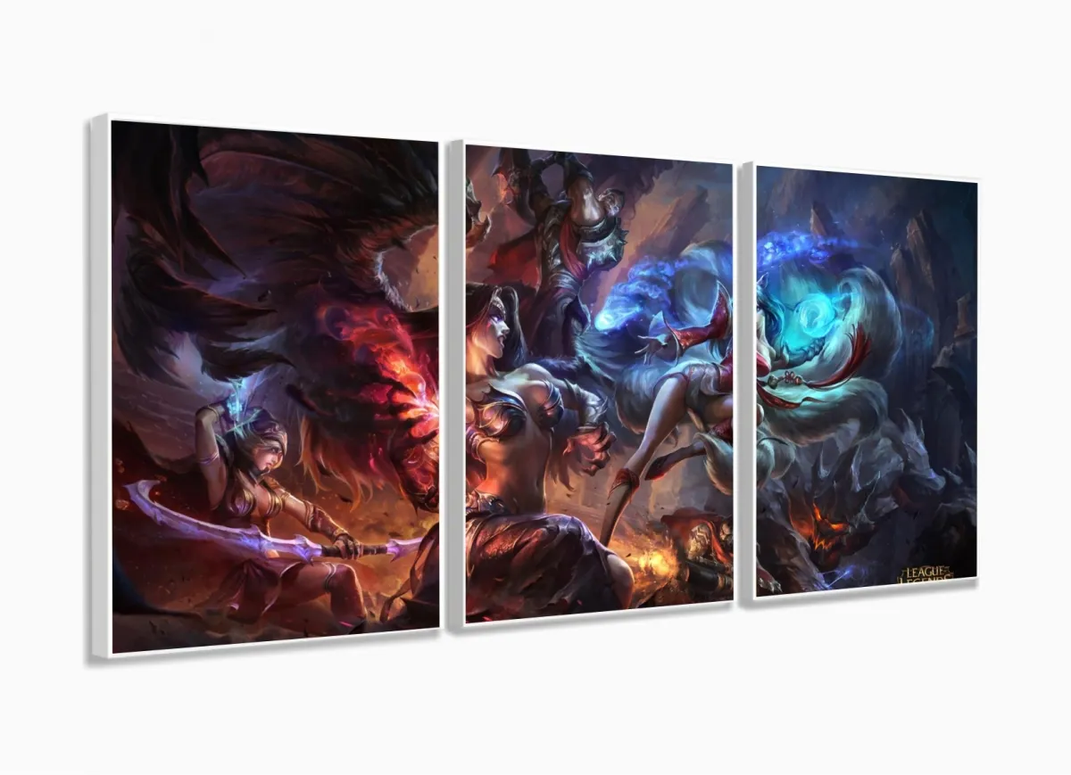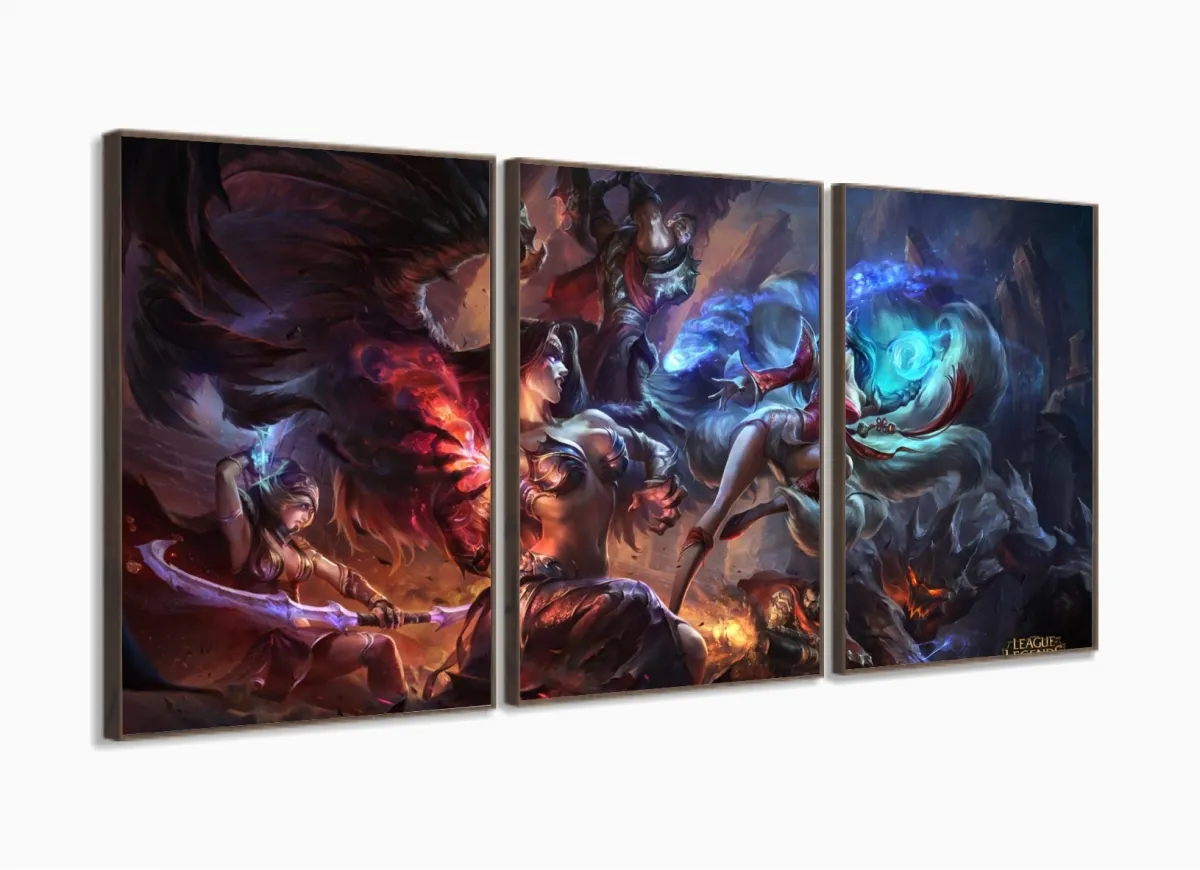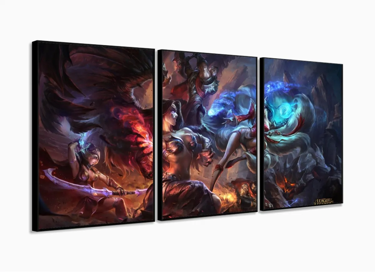 Quadro Decorativo Jogos lol 3 peças 120x60 com moldura filete