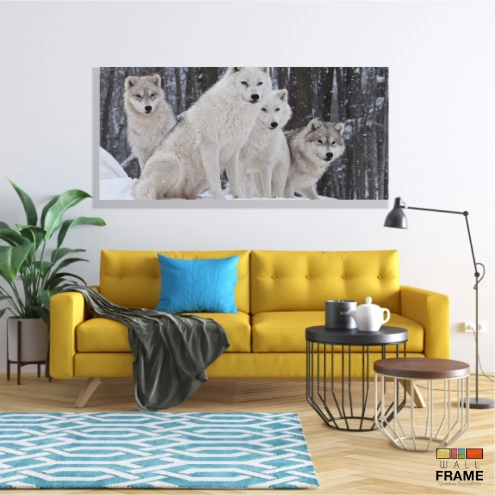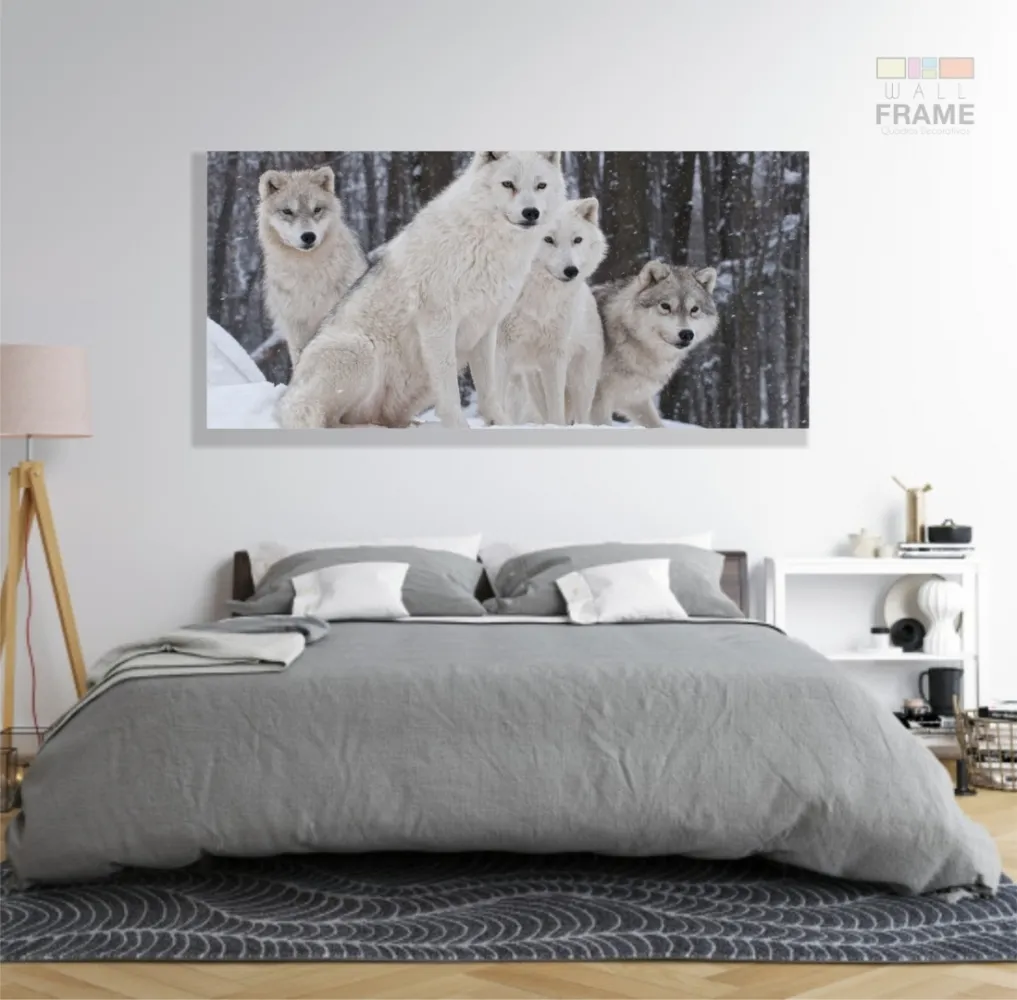 Quadro Decorativo Lobos Paisagem Com Tela em Tecido Canvas 130x60