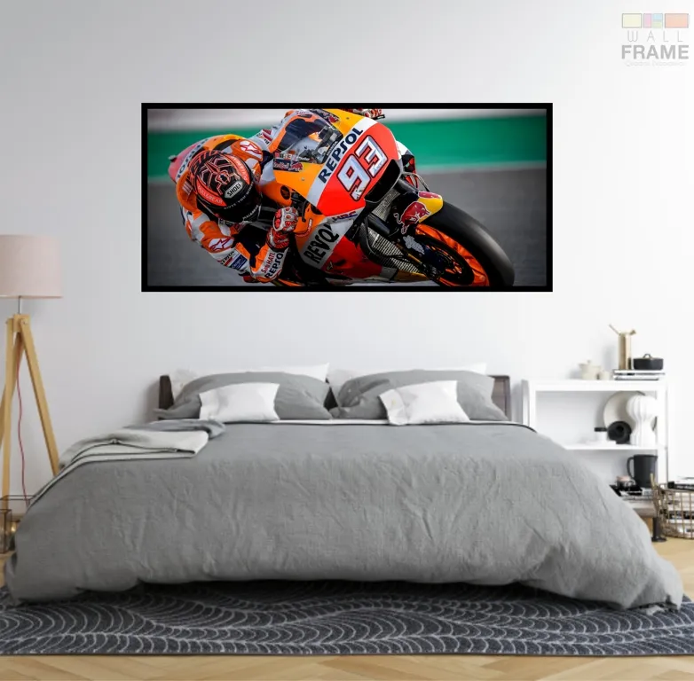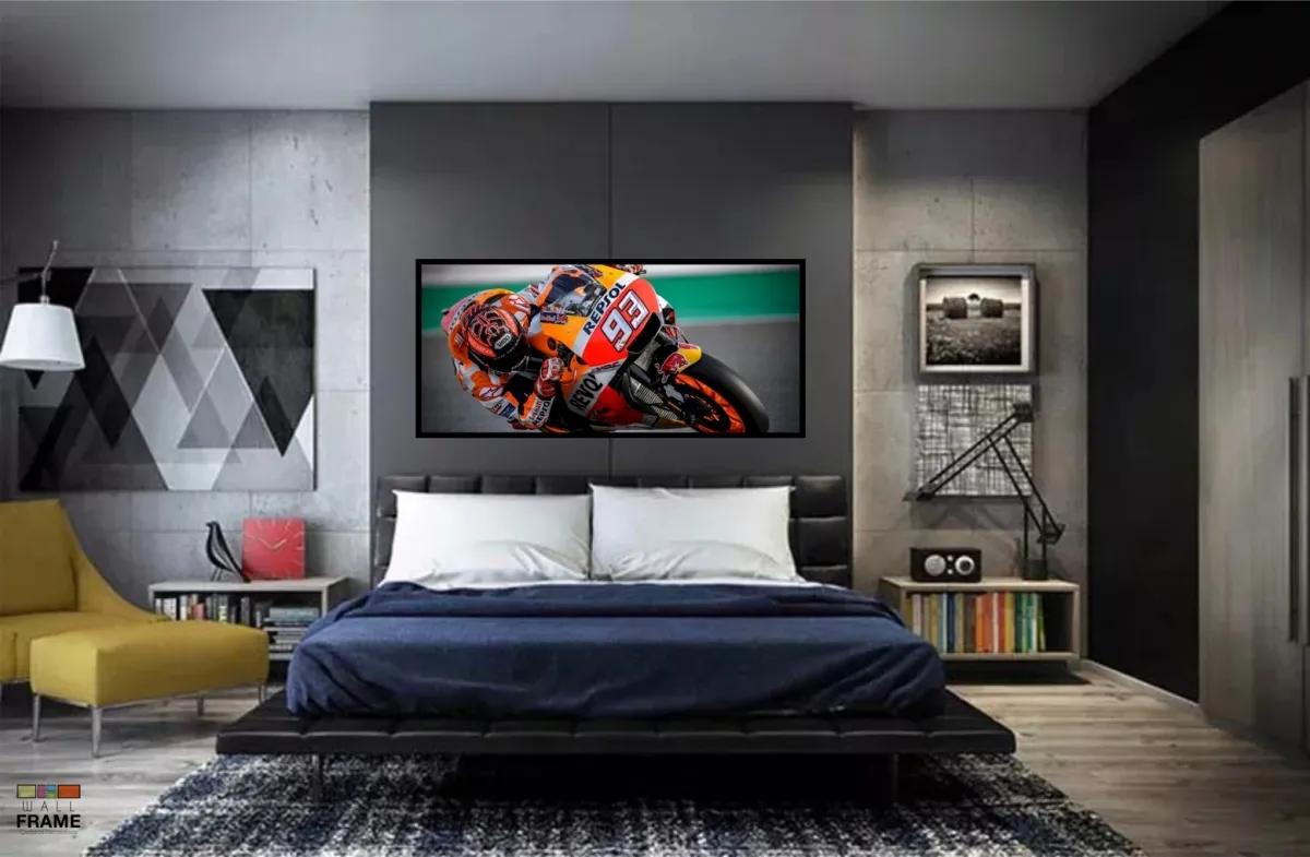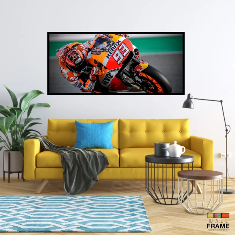 Quadro Decorativo Moto GP Aceleração 130x60 Moldura preta 2x2 cm