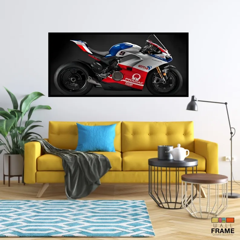 Quadro Decorativo Moto GP Potência 130x60 Moldura preta 2x2 cm