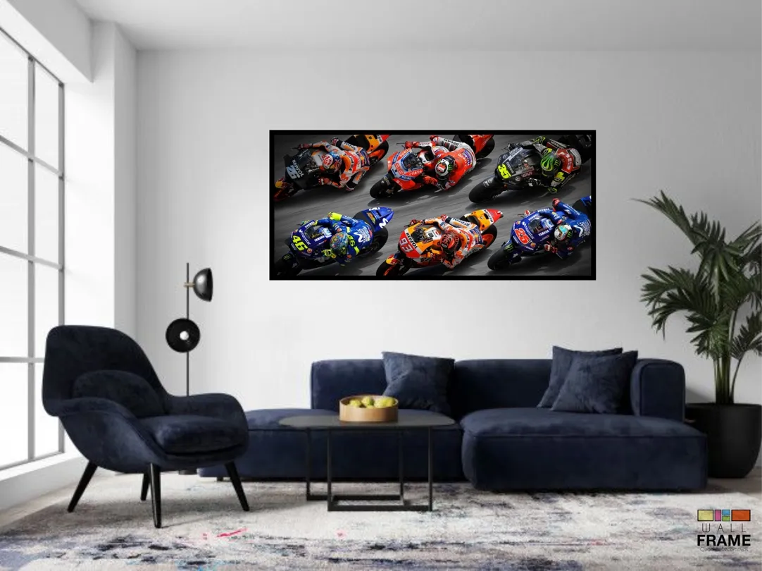 Quadro Decorativo Moto GP Técnica 130x60 Moldura preta 2x2 cm