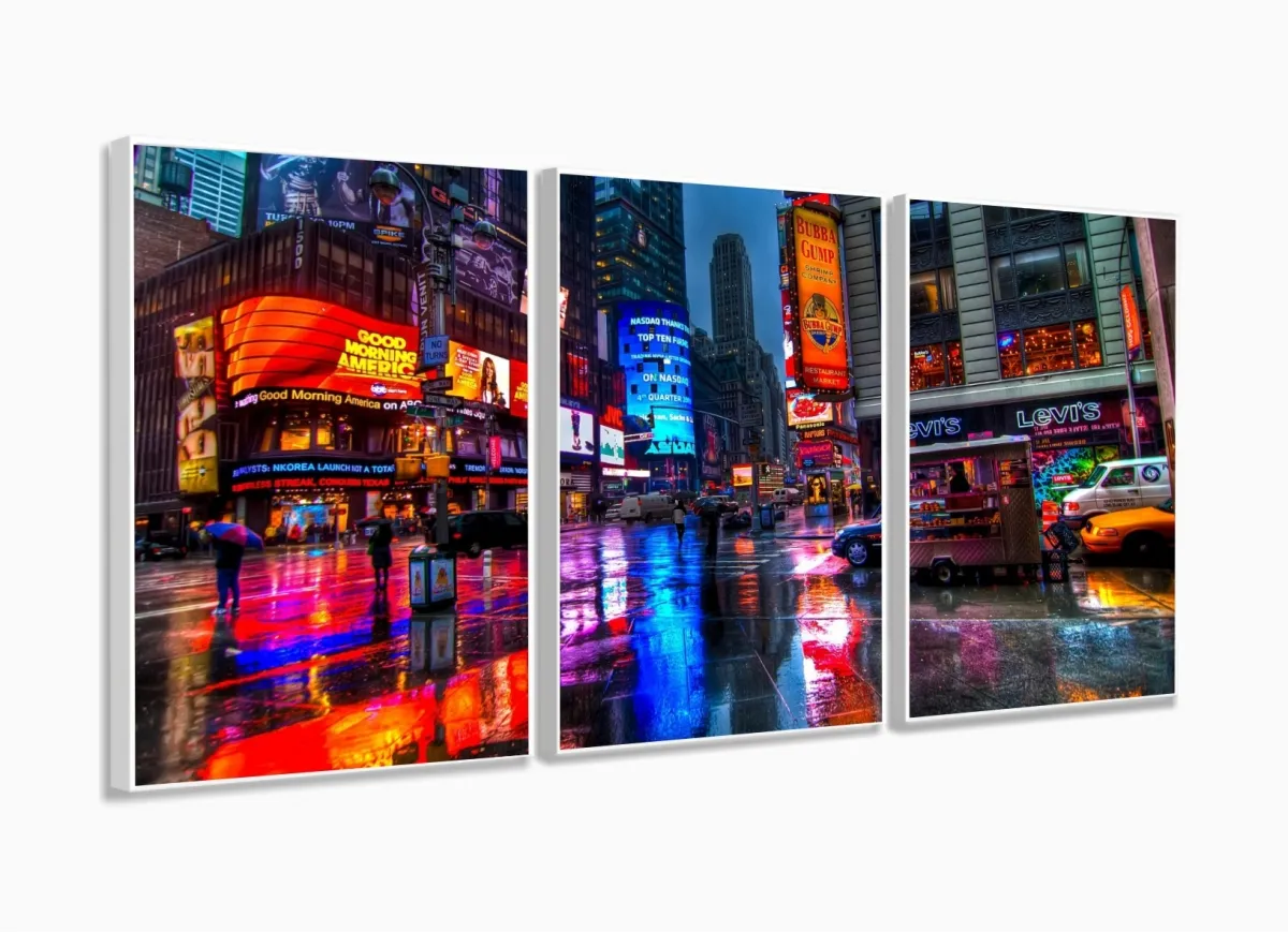 Quadro Decorativo Nova York Chuva 120x60 com moldura filete