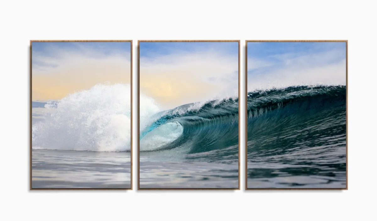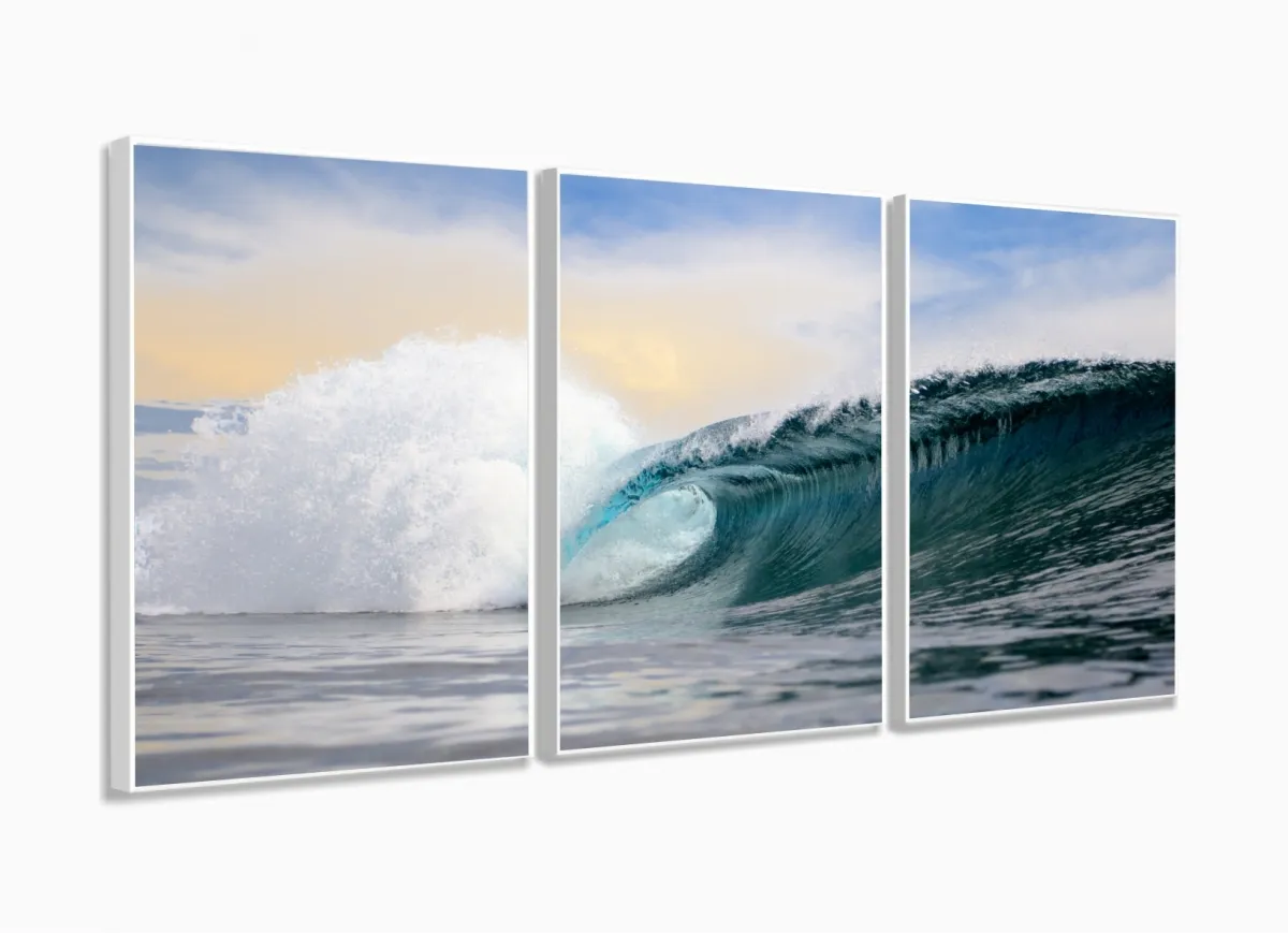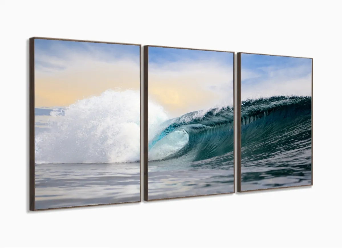 Quadro Mosaico Onda Mar Surf 5 Peças decorativo 120x60 com moldura filete