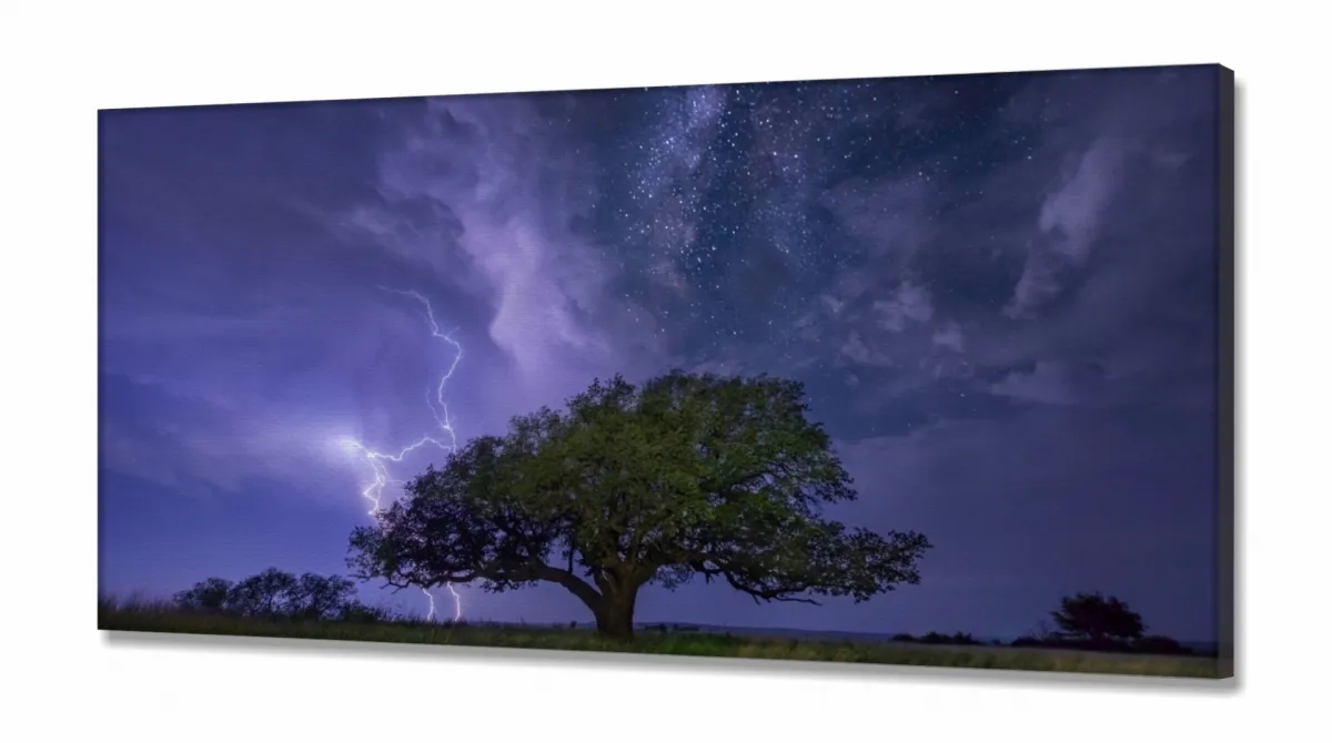 Quadro Decorativo Paisagens Árvore Noturna em Tecido Canvas 130x60