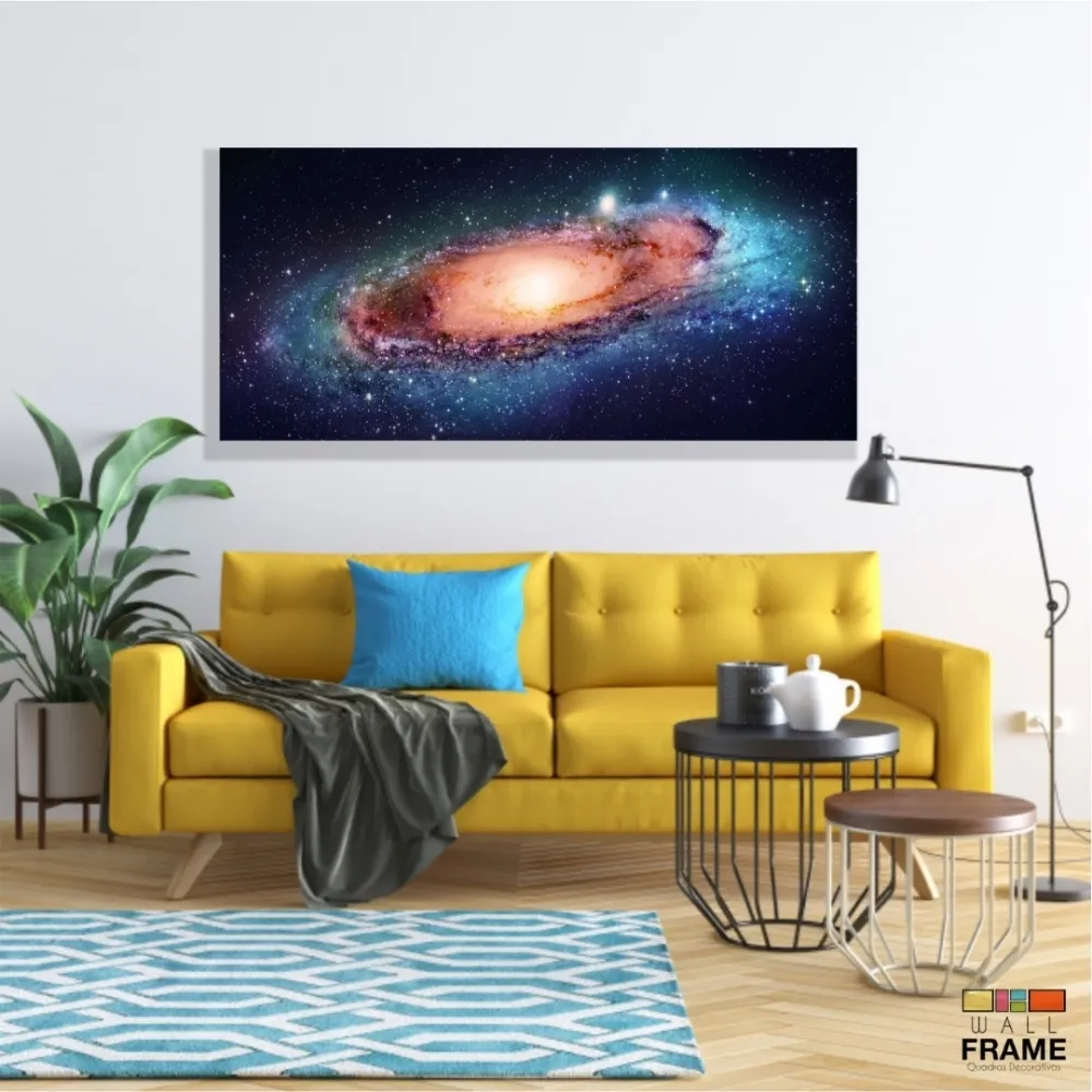 Quadro Decorativo Paisgem Do Espaço Galáxia em Tecido Canvas 130x60
