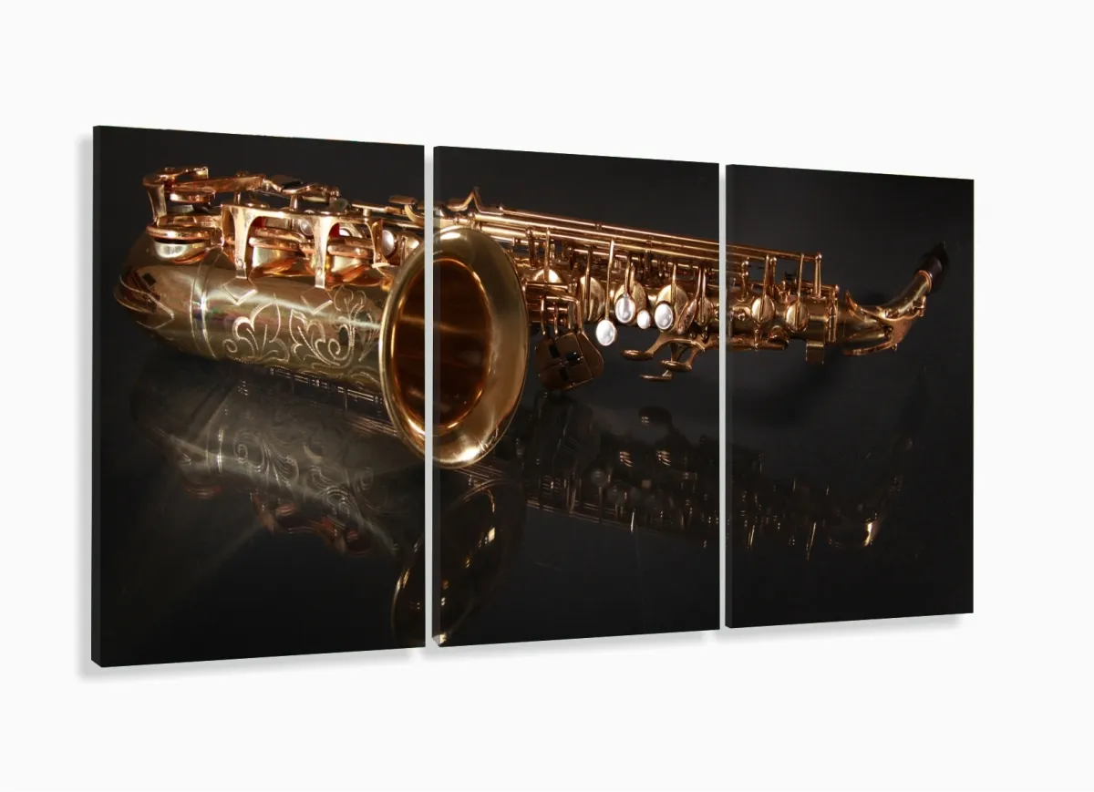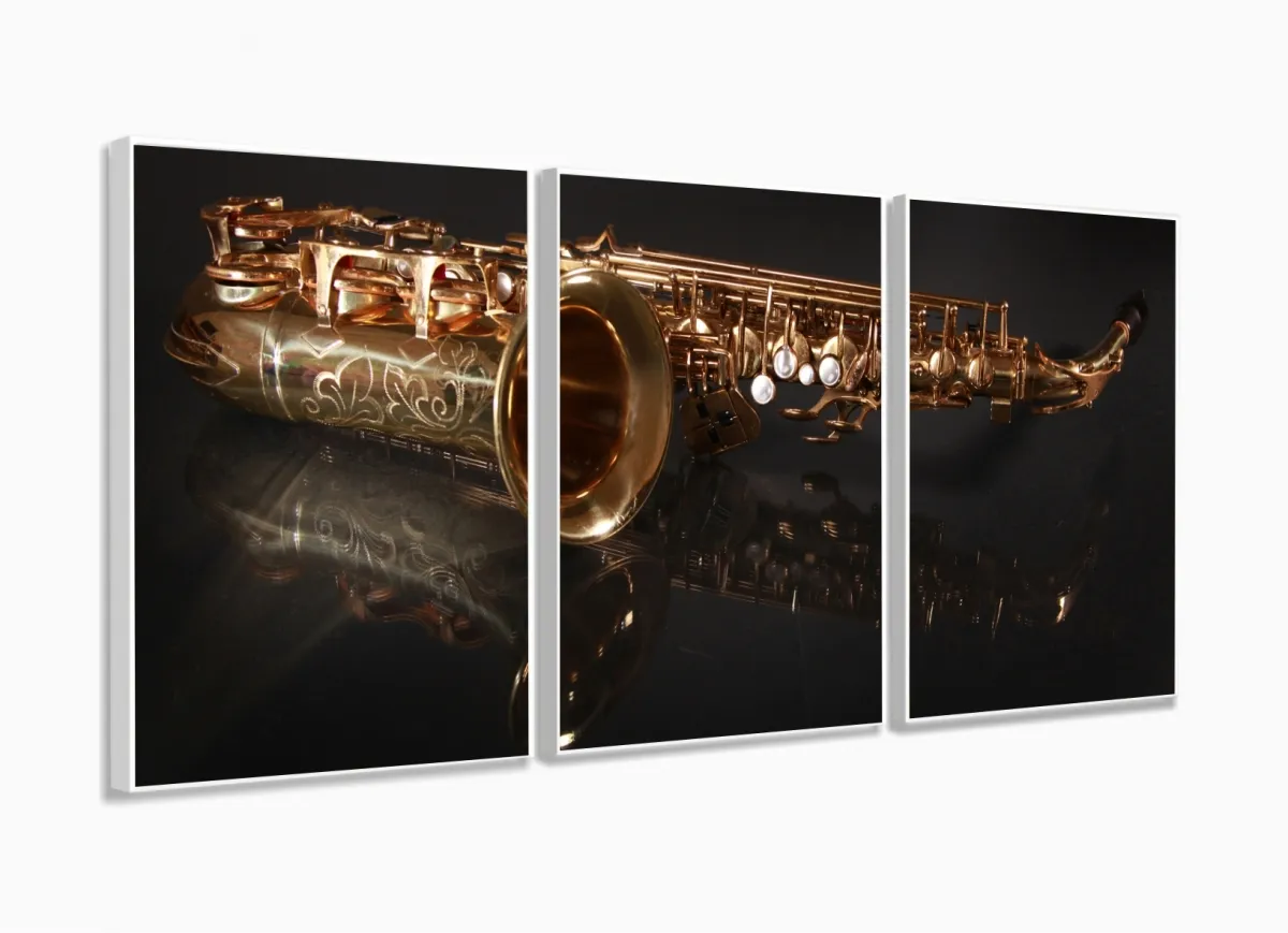 Quadro Decorativo Reflexo Saxofone 120x60 Sala Quarto com moldura filete